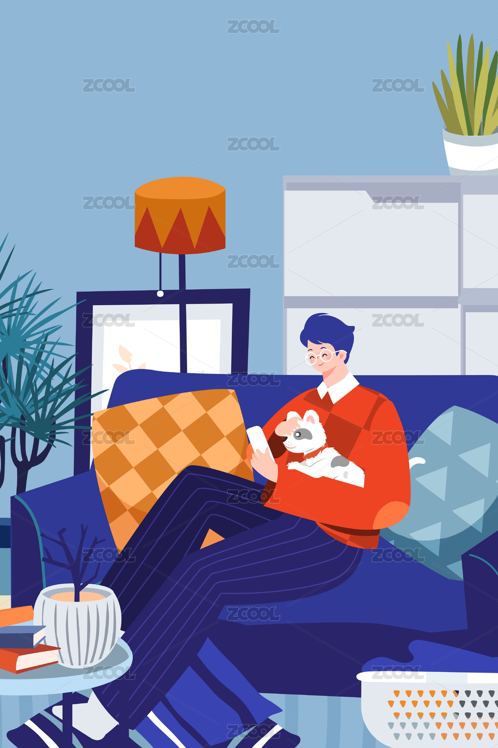 卡通手绘创意双十一光棍节单身狗单身汉抱着狗狗插画