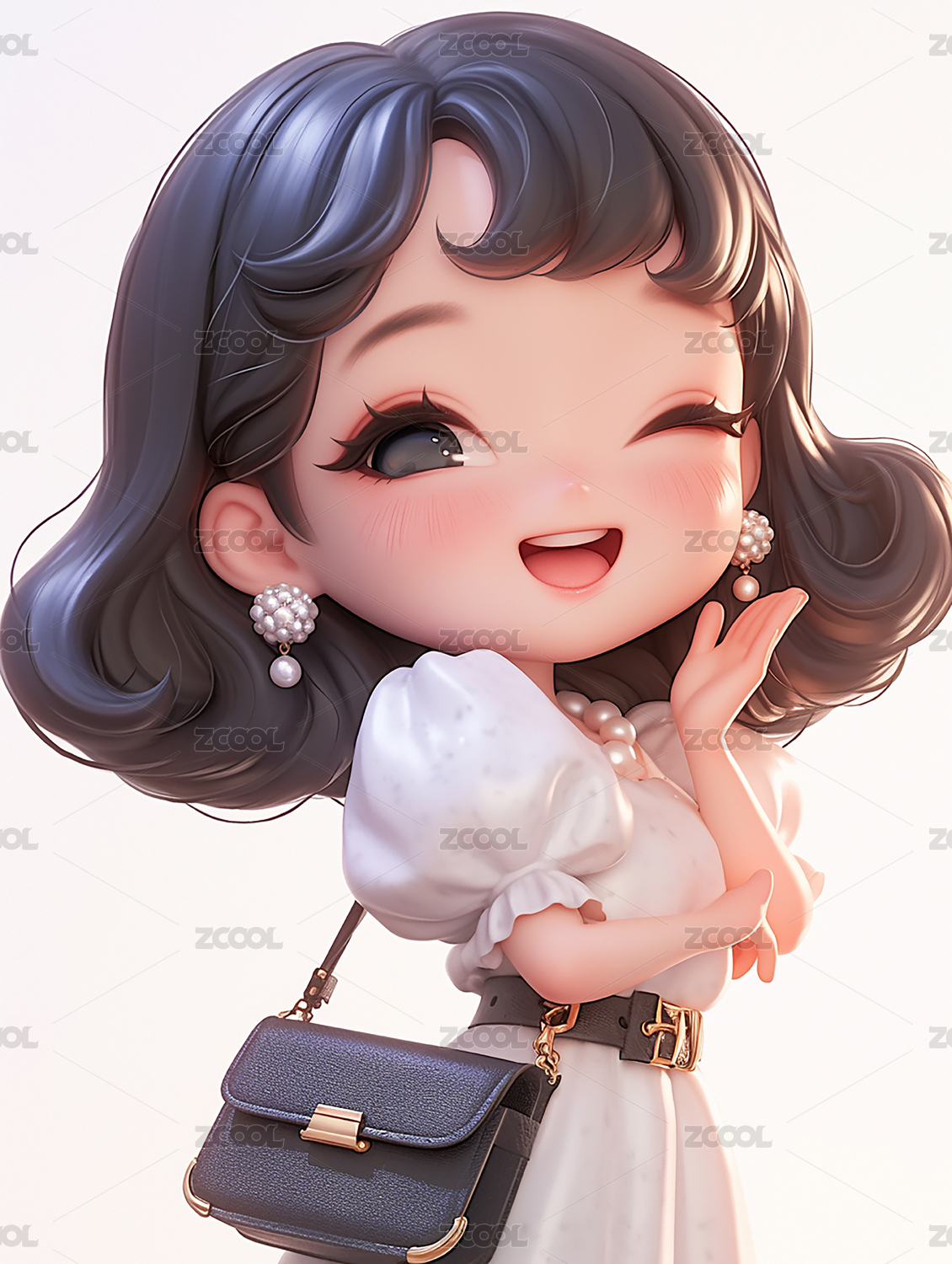 戴着眼镜的长发小美女在樱花树下舞蹈玩乐