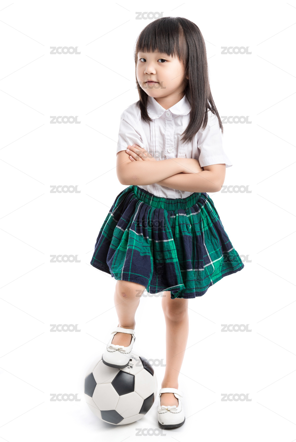 脚踩足球的亚洲小女孩