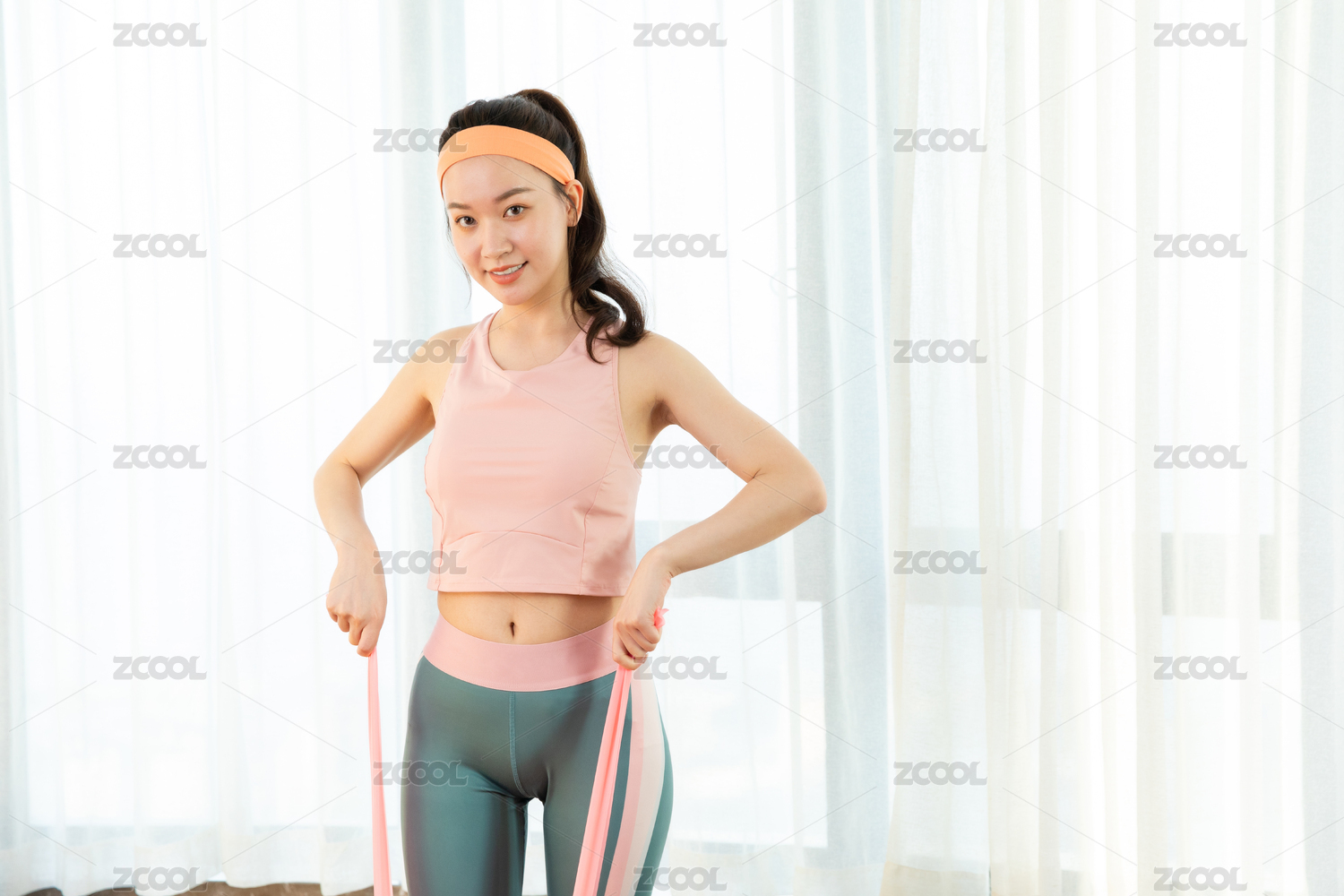 女生脚踩弹力带拉练锻炼