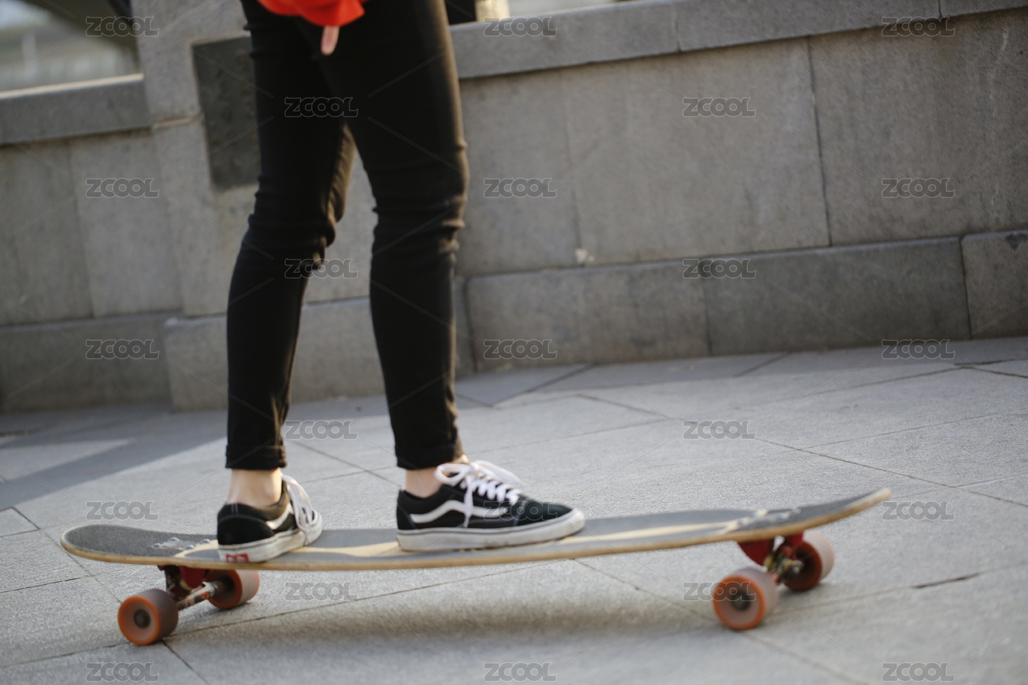 玩滑板女孩的特写镜头,脚踩在滑板上