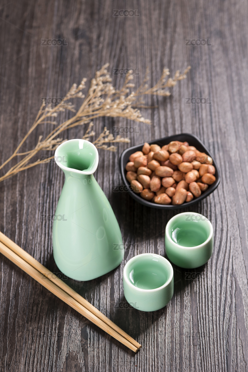 中国画风格,茶帘下面的桌面上放着酒壶和酒杯,还有一件手工艺品