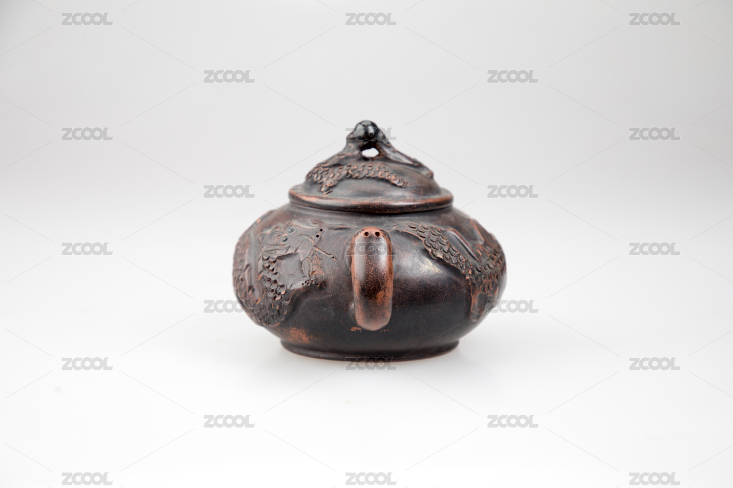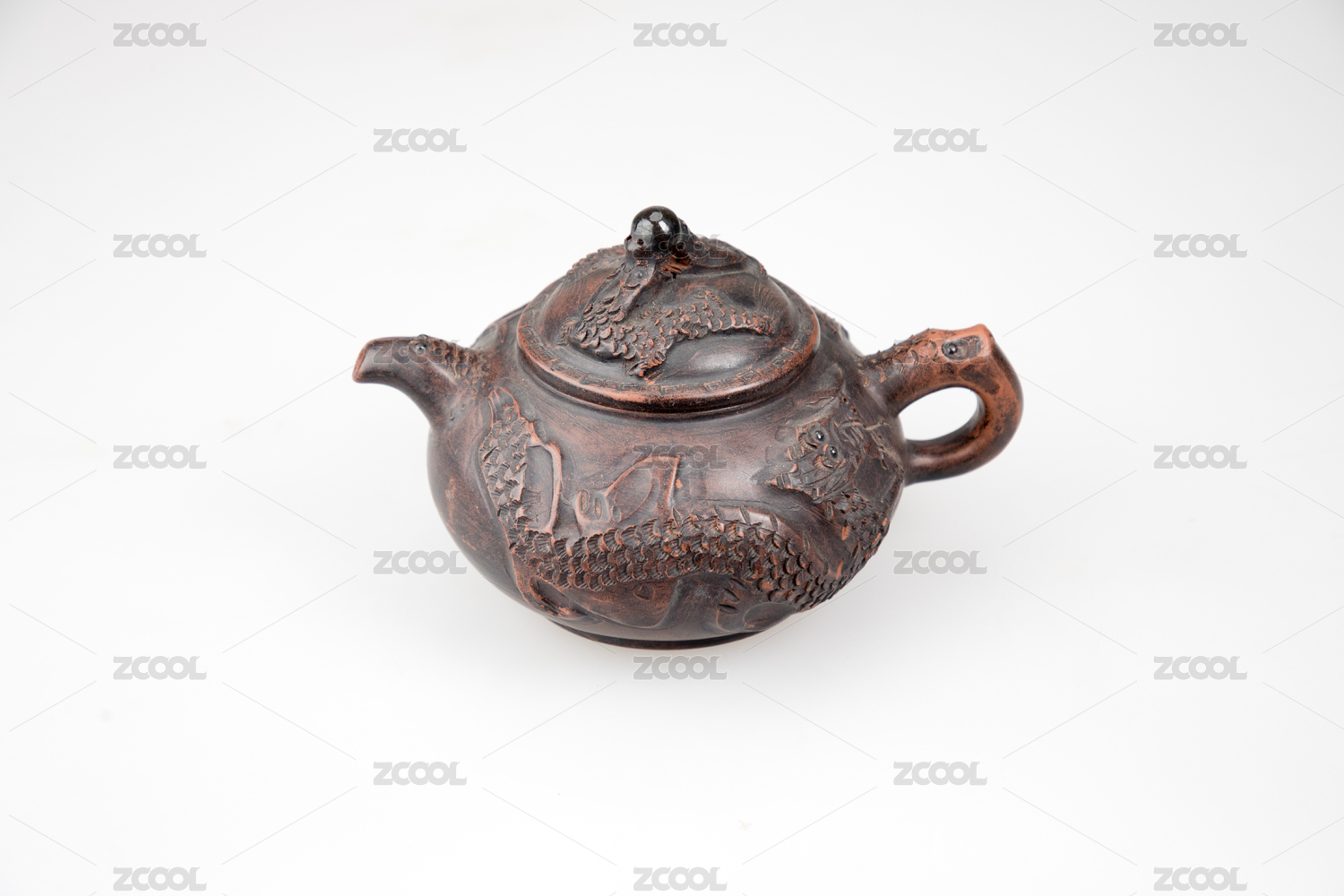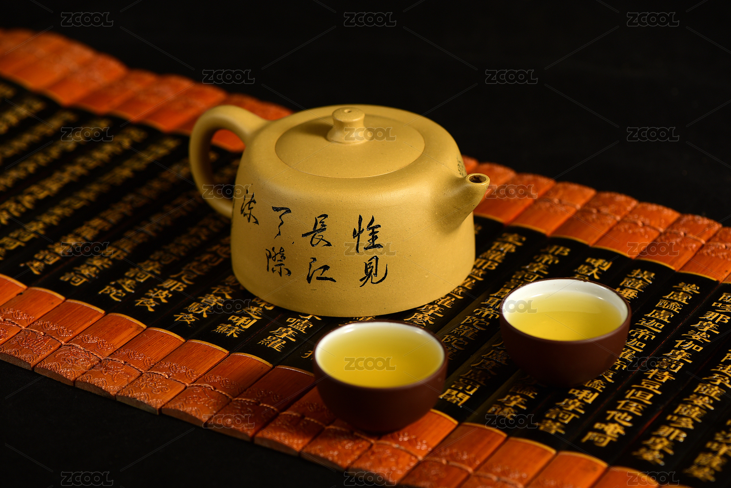 紫砂茶壶茶杯茶具放在经书竹简上茶文化茶艺