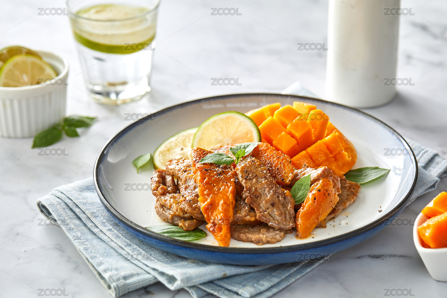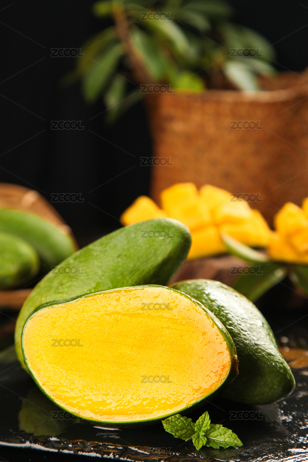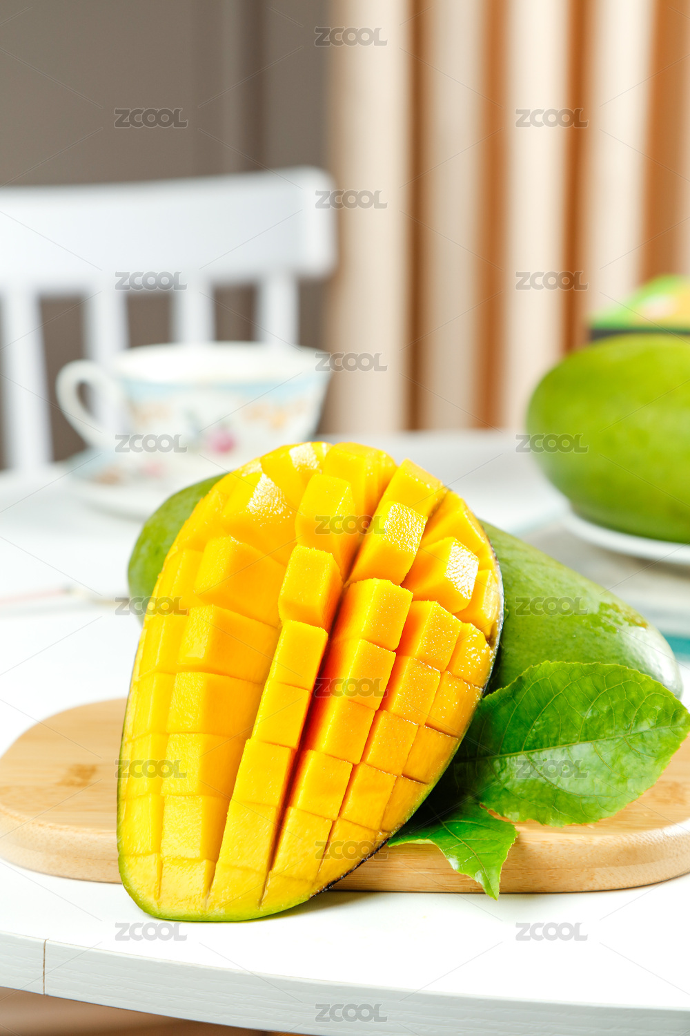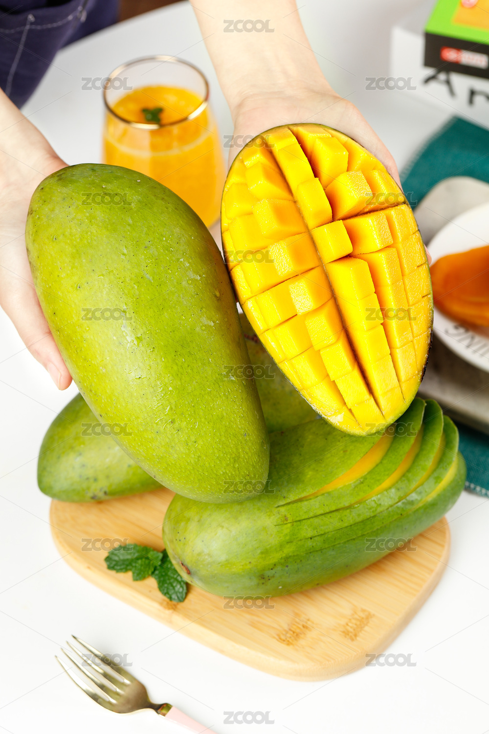 手上拿着一个完整的香玉芒和半边切开的香芒