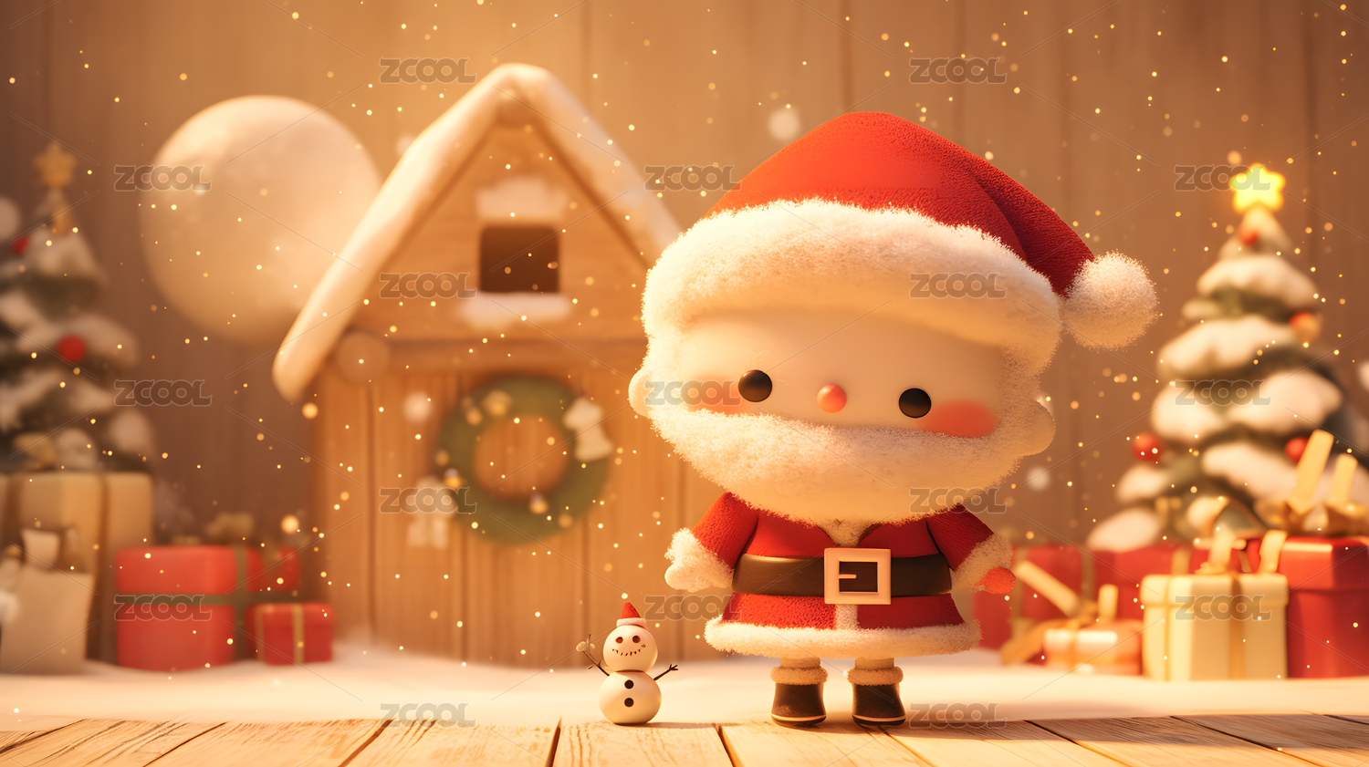 毛毡风格可爱圣诞老人和小麋鹿