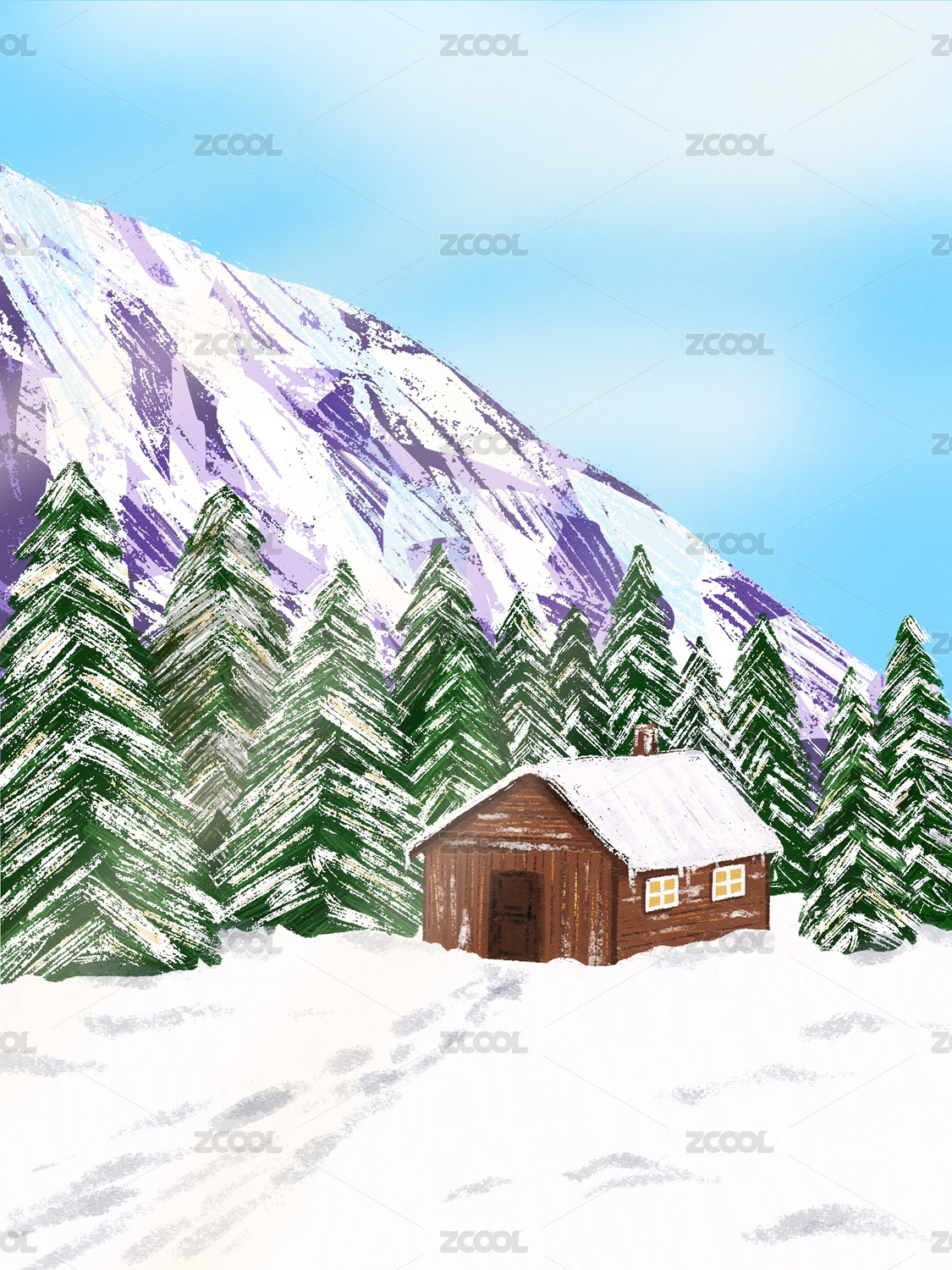 冬季森林雪景人物玩耍插画冬天户外活动海报