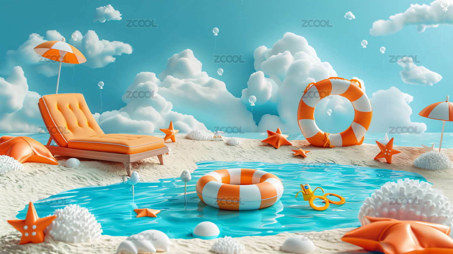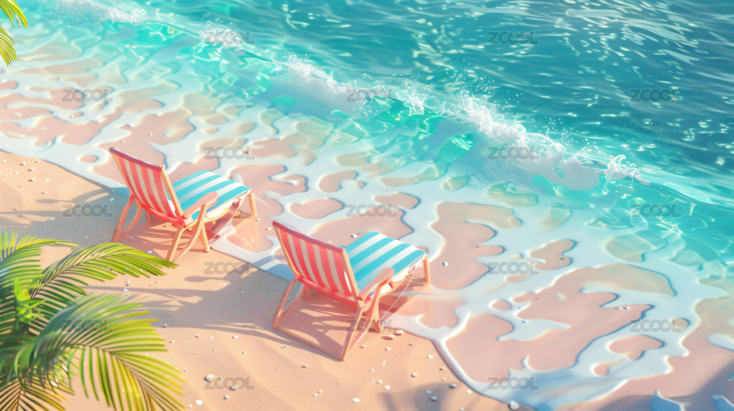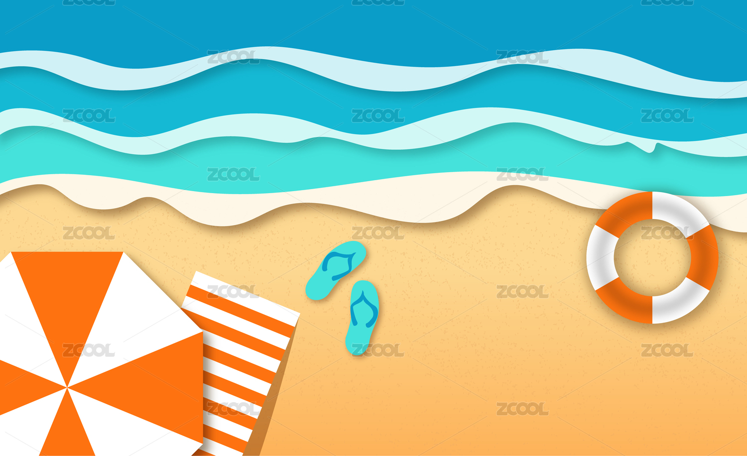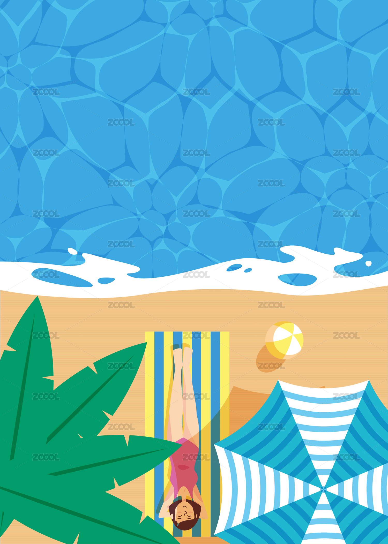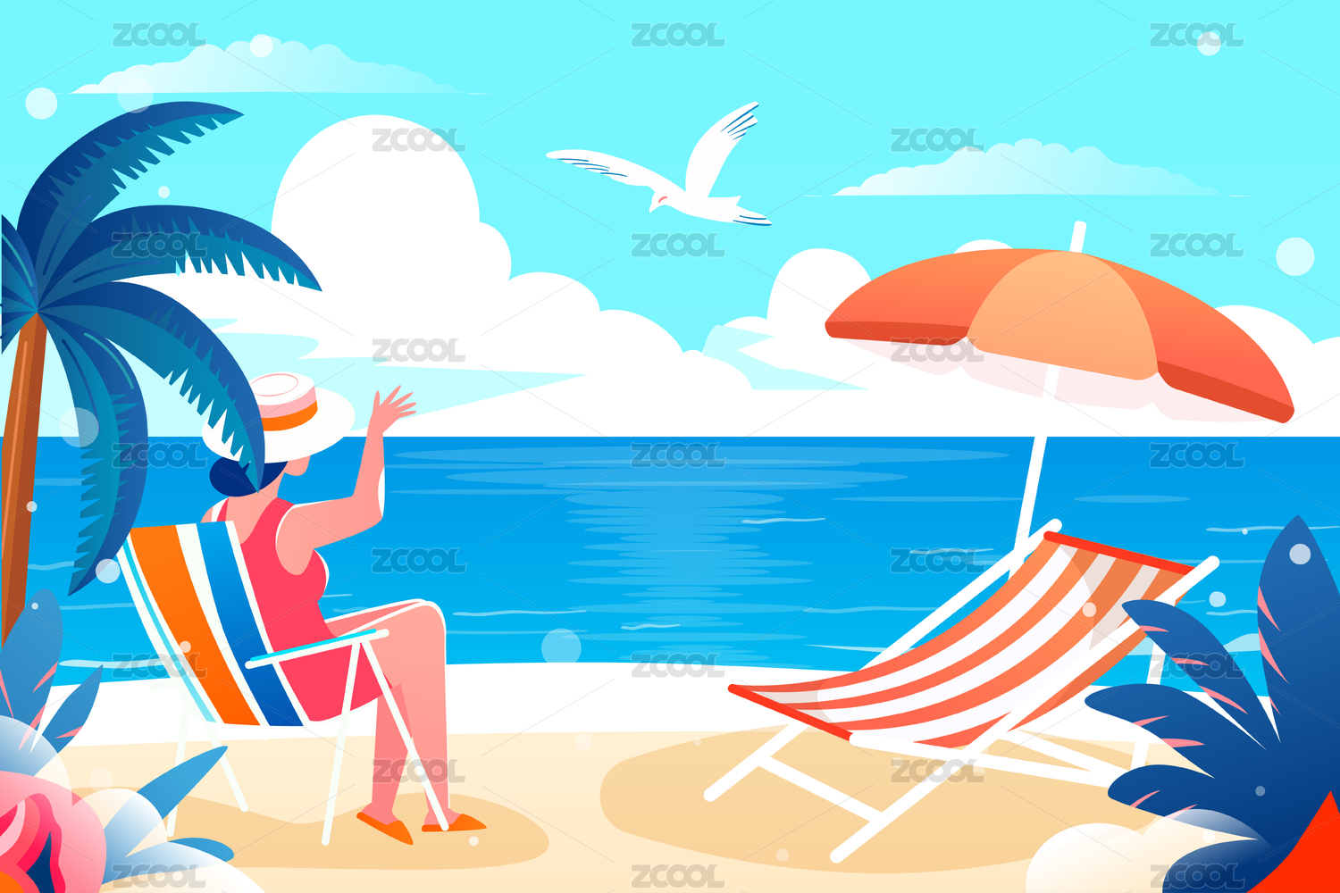 大暑节气海边旅行夏季海滩度假避暑矢量插画