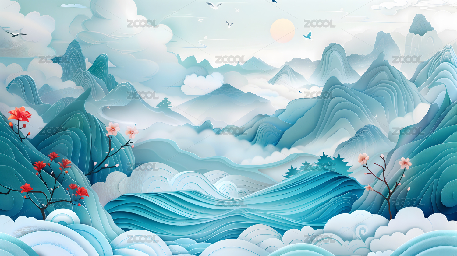 层次丰富的红色曲线渐变元素 抽象风格背景