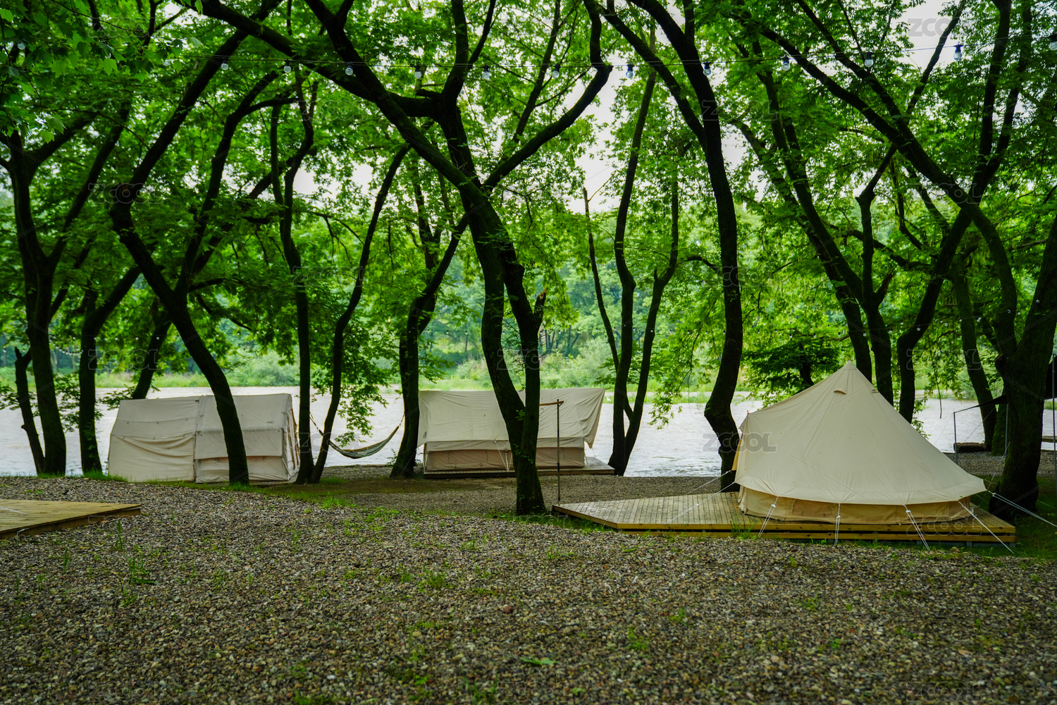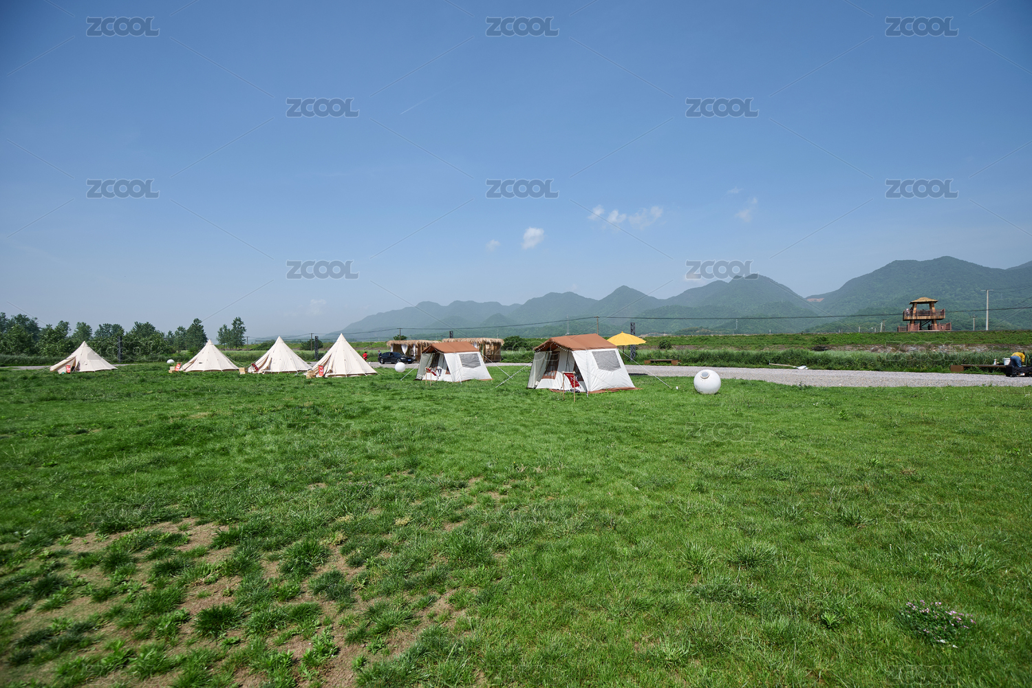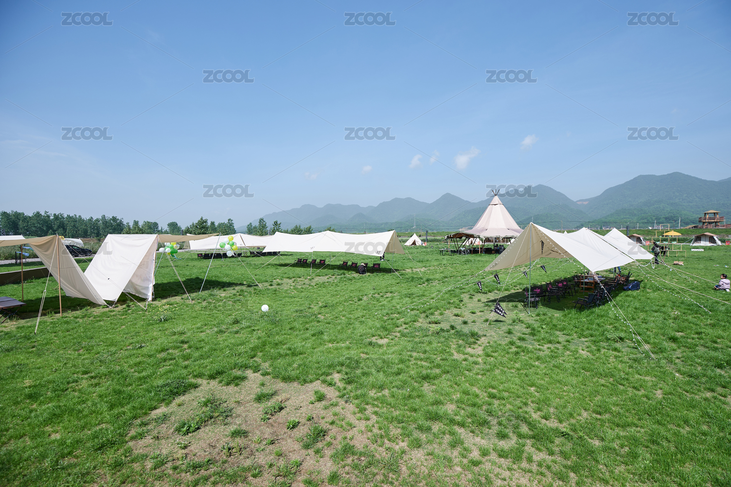 卡通女孩露营帐篷春游矢量扁平插画场景