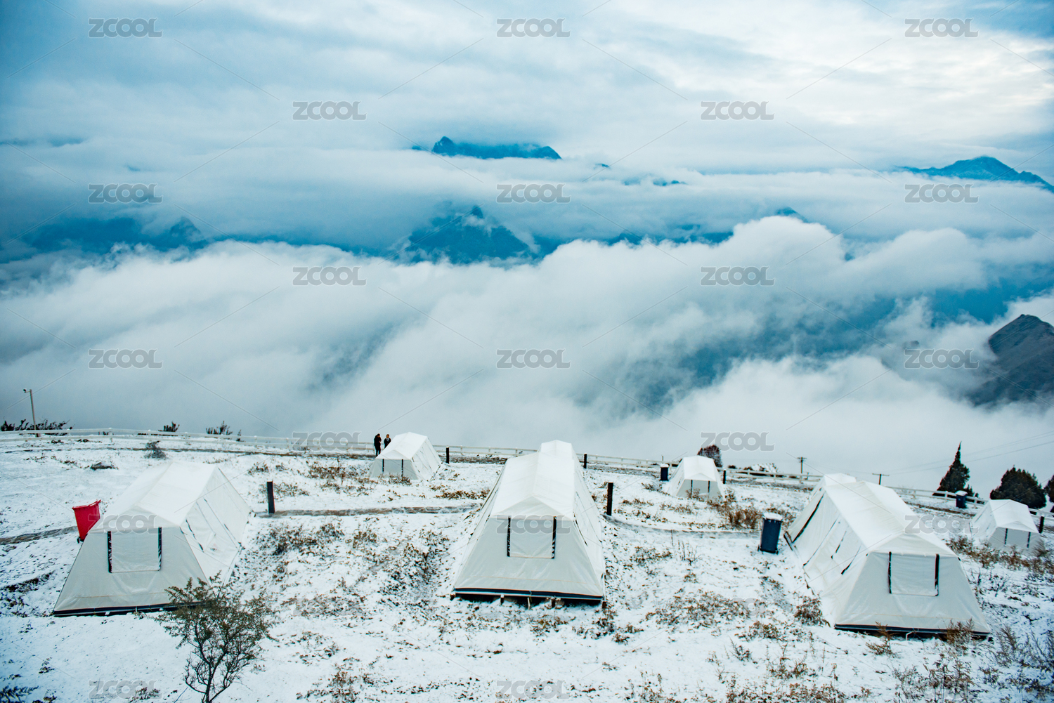 野外白色露营帐篷前享受生日蛋糕的小男孩