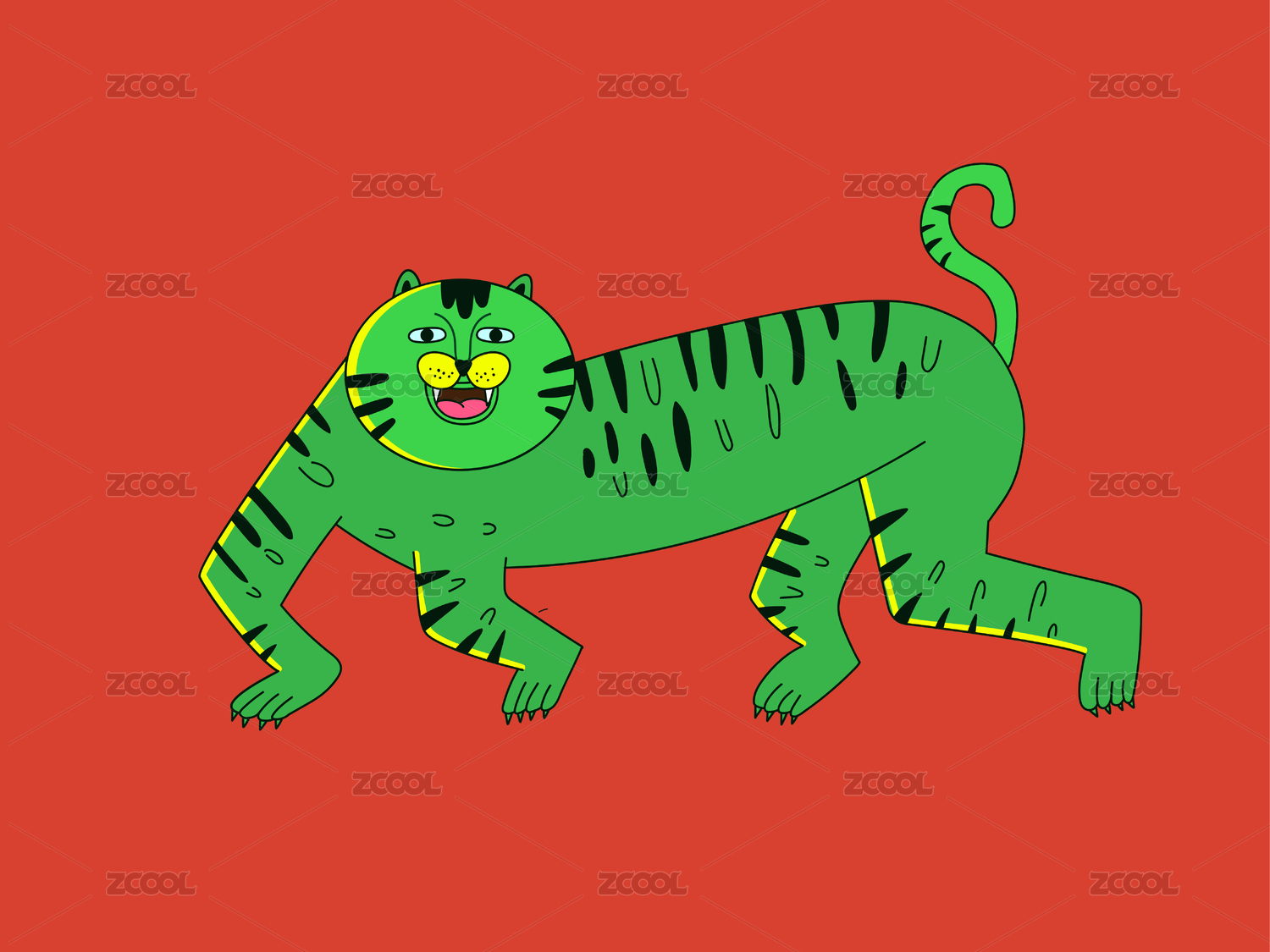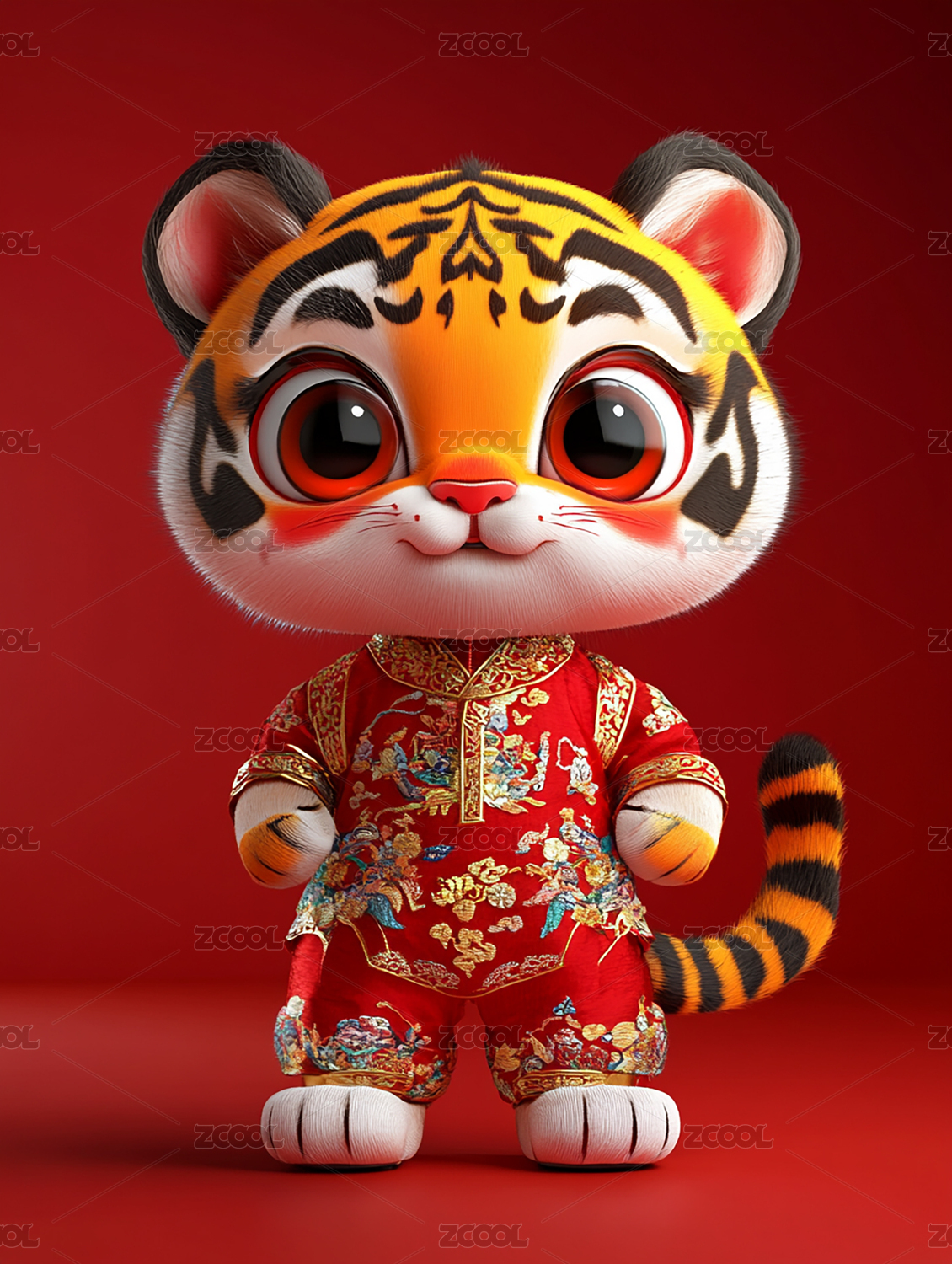 国潮可爱卡通老虎ip形象招财春节矢量插画