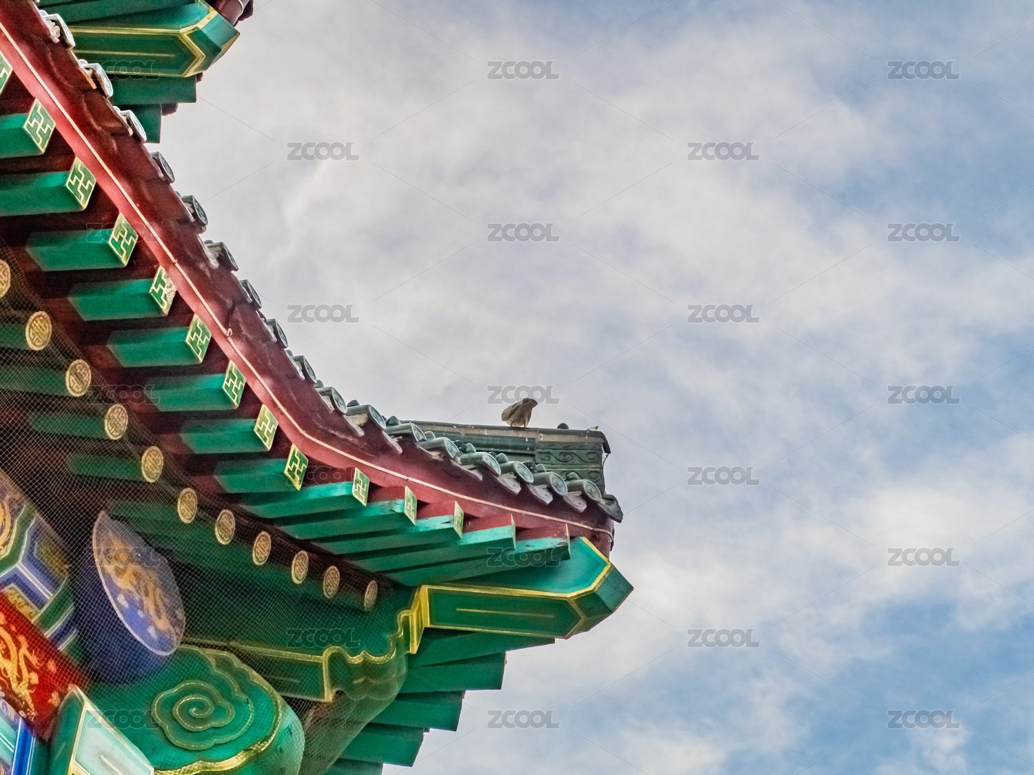 青岛湛山寺传统建筑屋檐特写