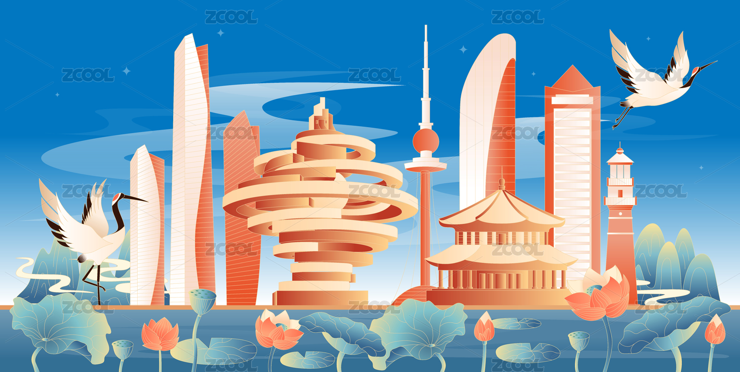 青岛地标建筑国潮插画