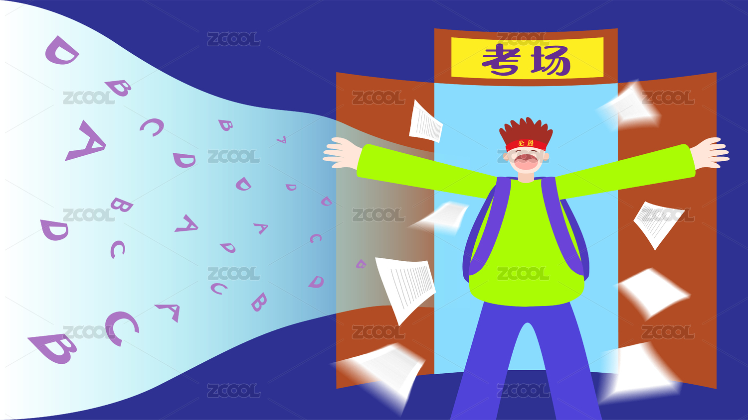 学生勤奋学习考试加油助威插画
