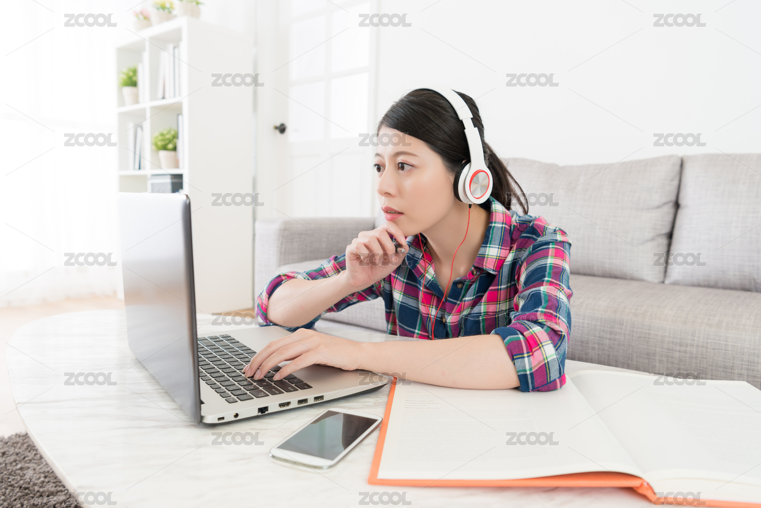 年轻的美少女使用在线电子学习系统做作业和学习准备考试,学校在移动计算机期待。