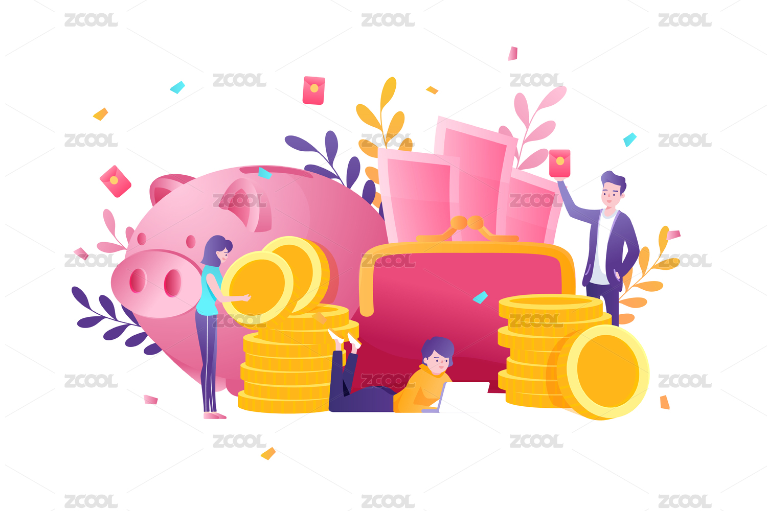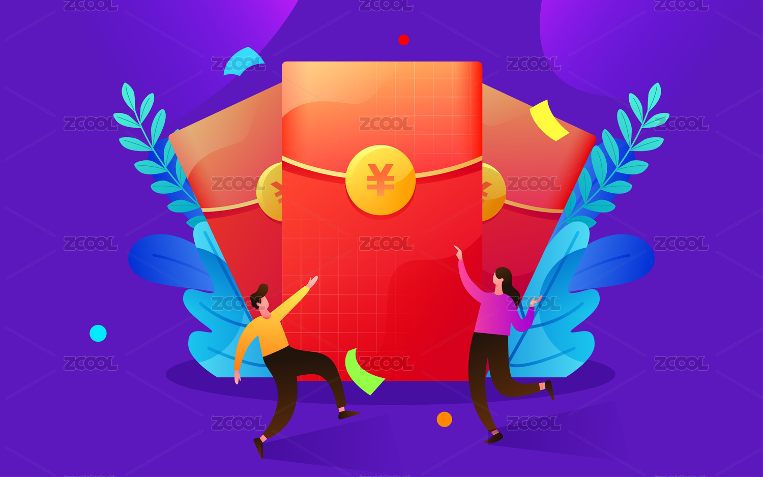 收红包的人邀请好友礼包活动金融概念扁平矢量插画