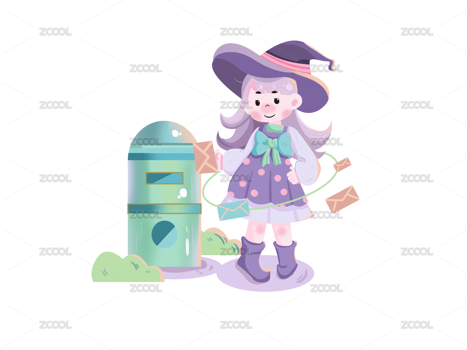 紫色戴帽子女巫拿信件邮箱邮政日