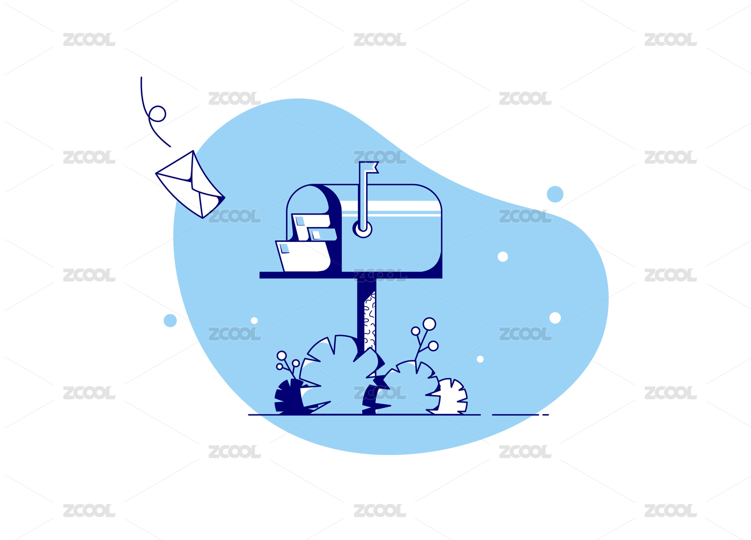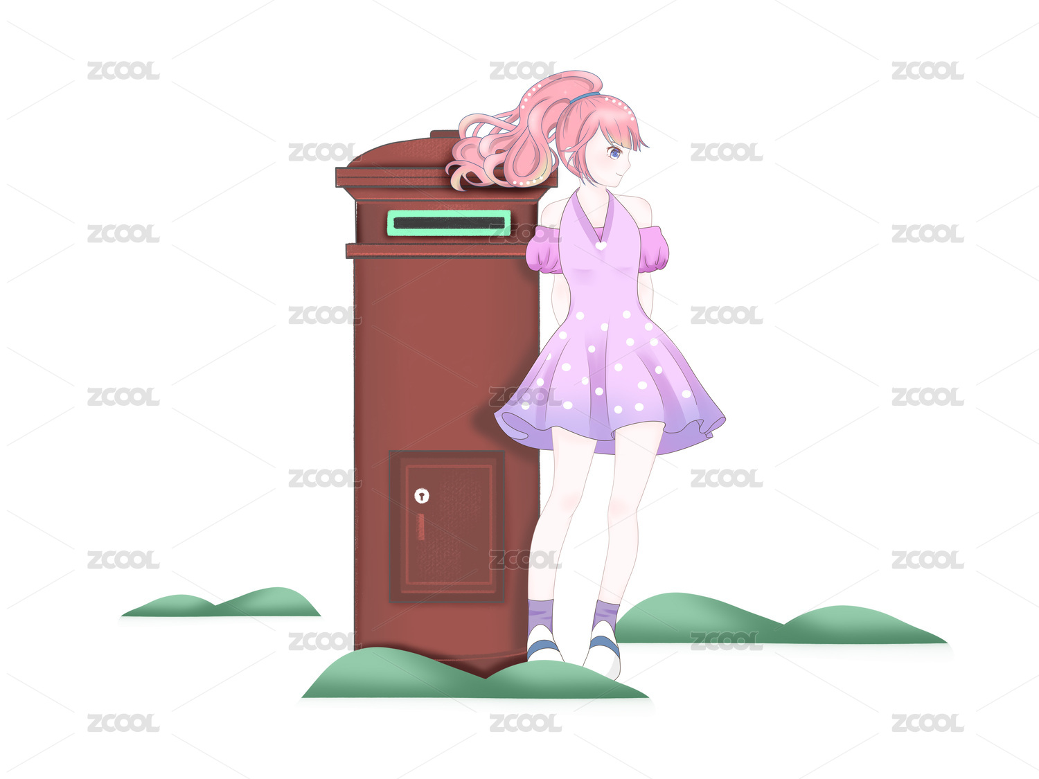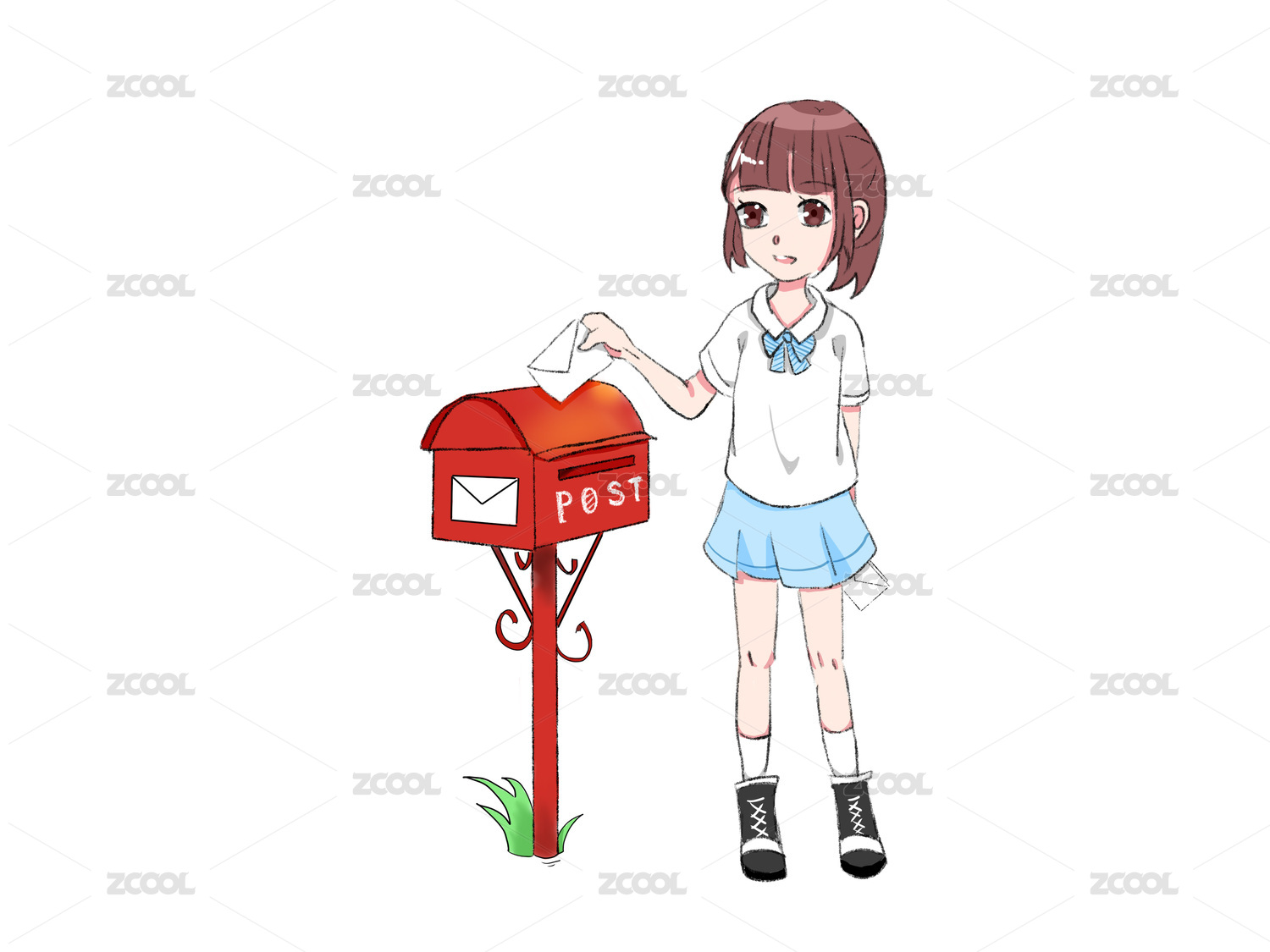 卡通邮政邮箱信封寄信信封女孩元素