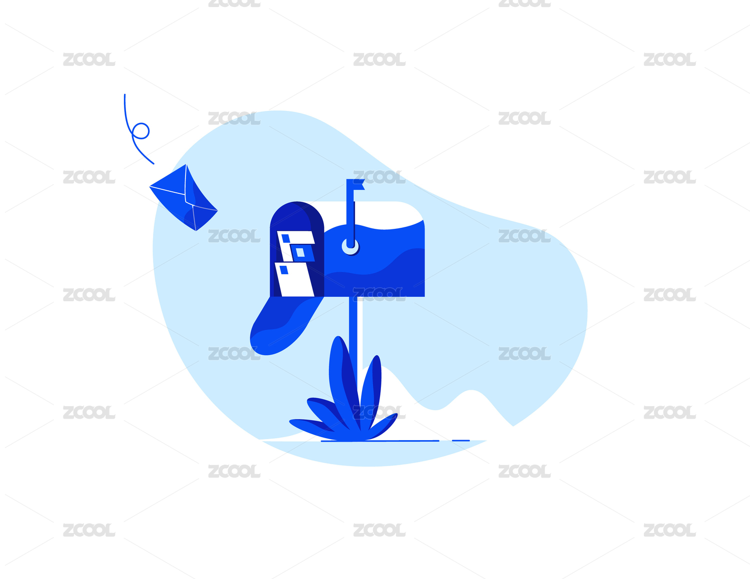 渐变风格打开的信箱矢量插画元素