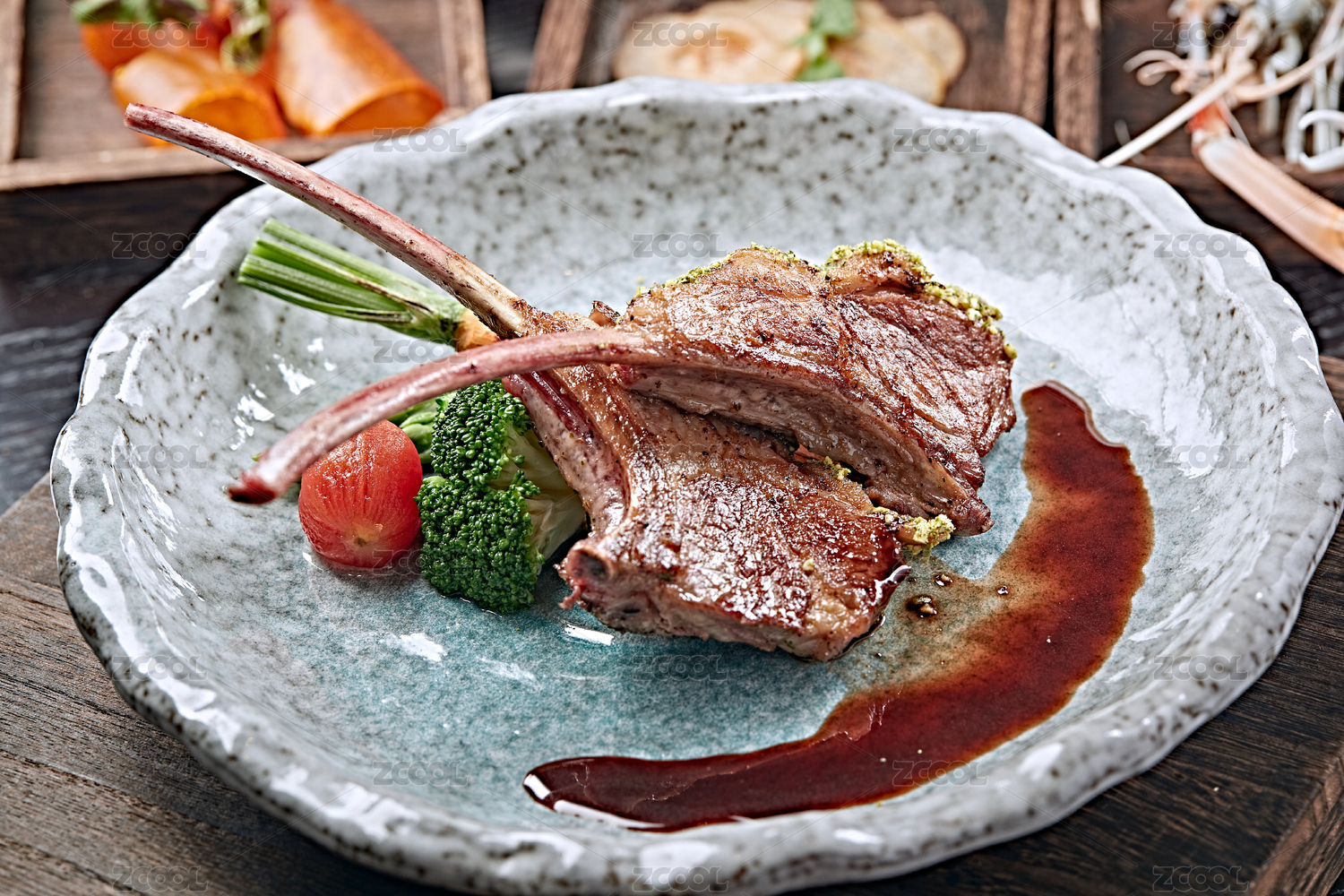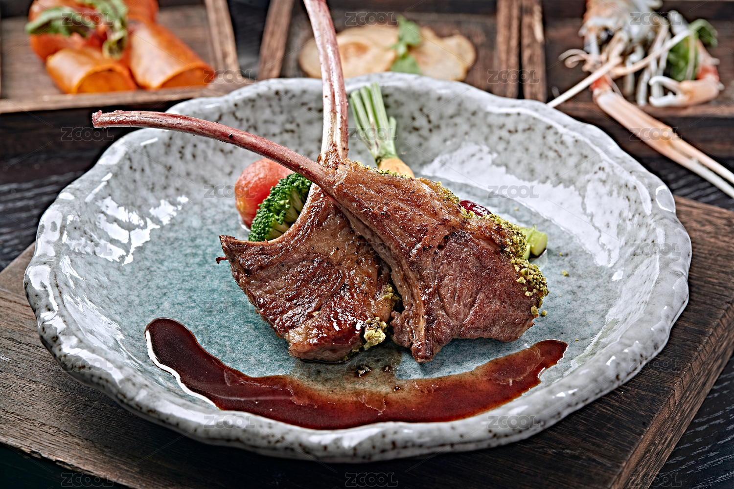 盘子里的烧烤烤肉料理食材羊排战斧羊排