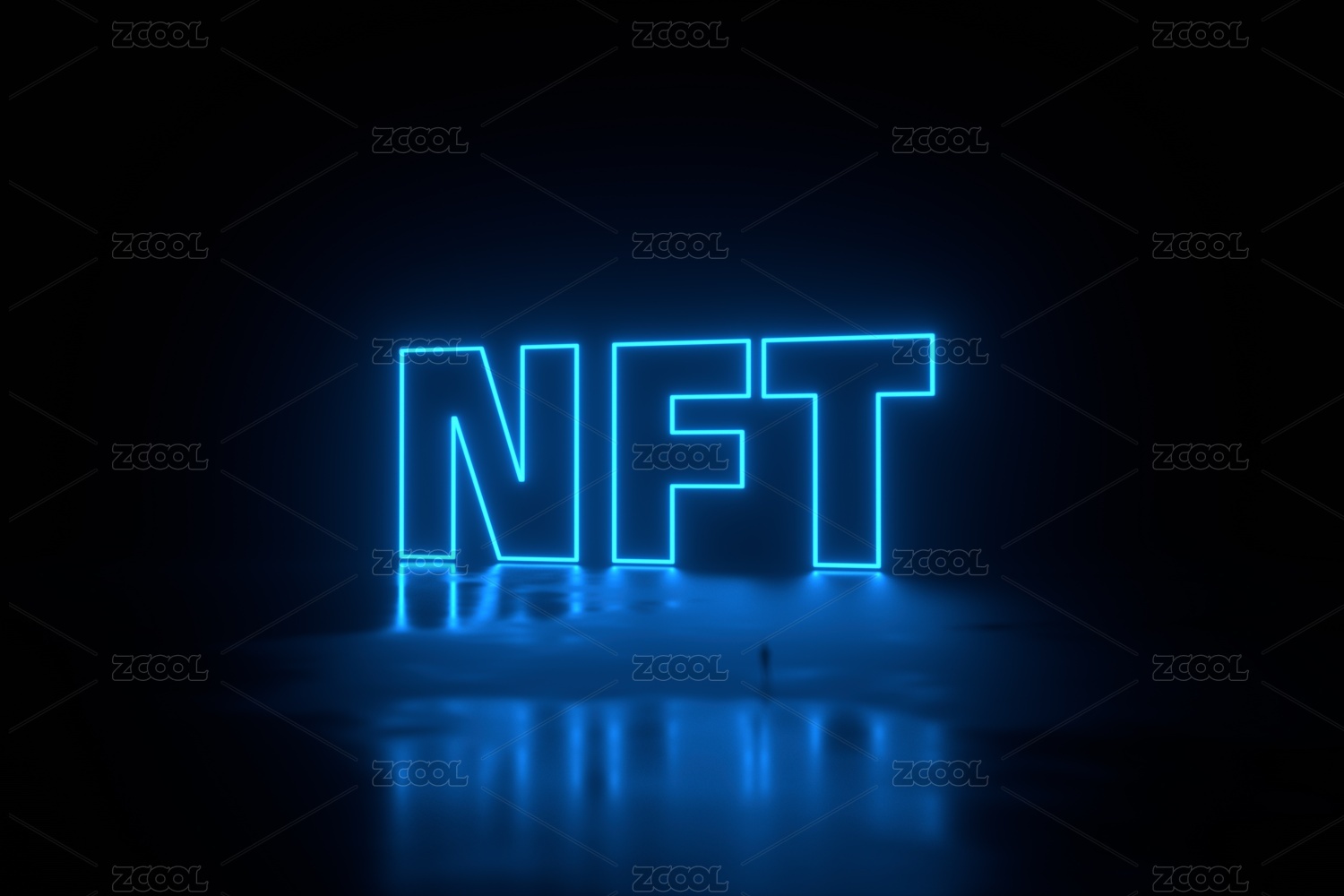 NFT与蓝色背景3D渲染