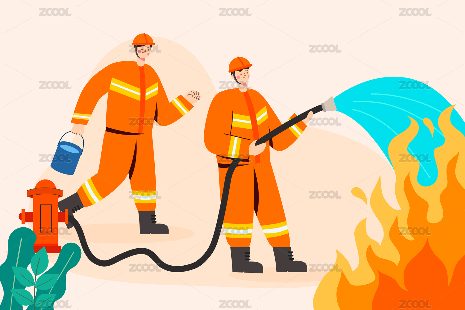 灭火的消防员插画