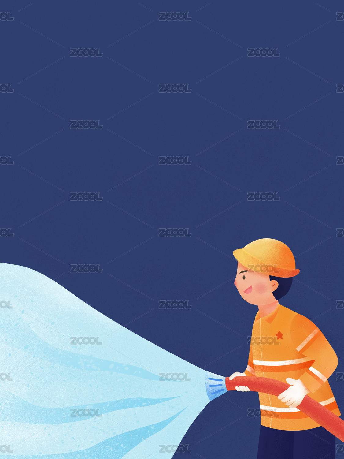 一个拿着高压水枪的消防员插画