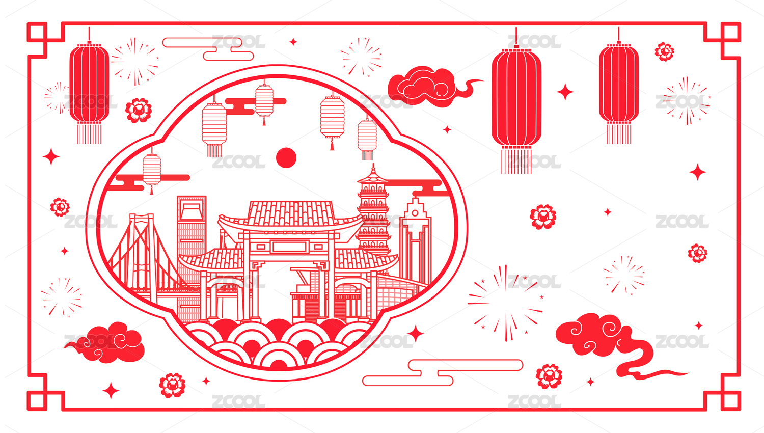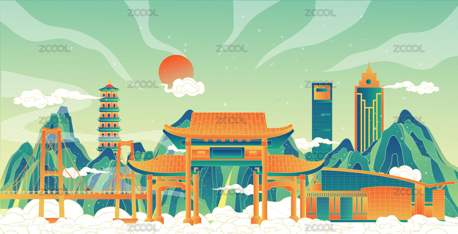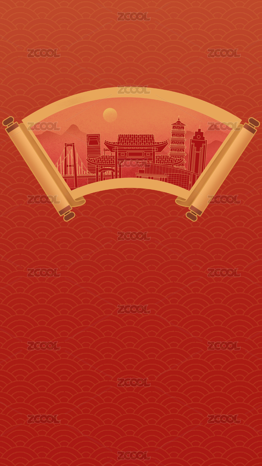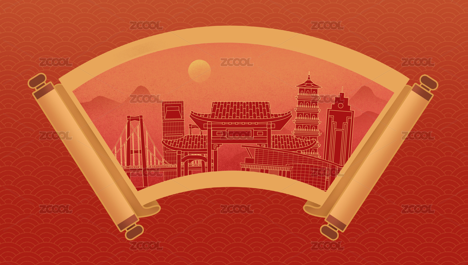 中国中山中国风画卷古典卷轴书卷城市建筑
