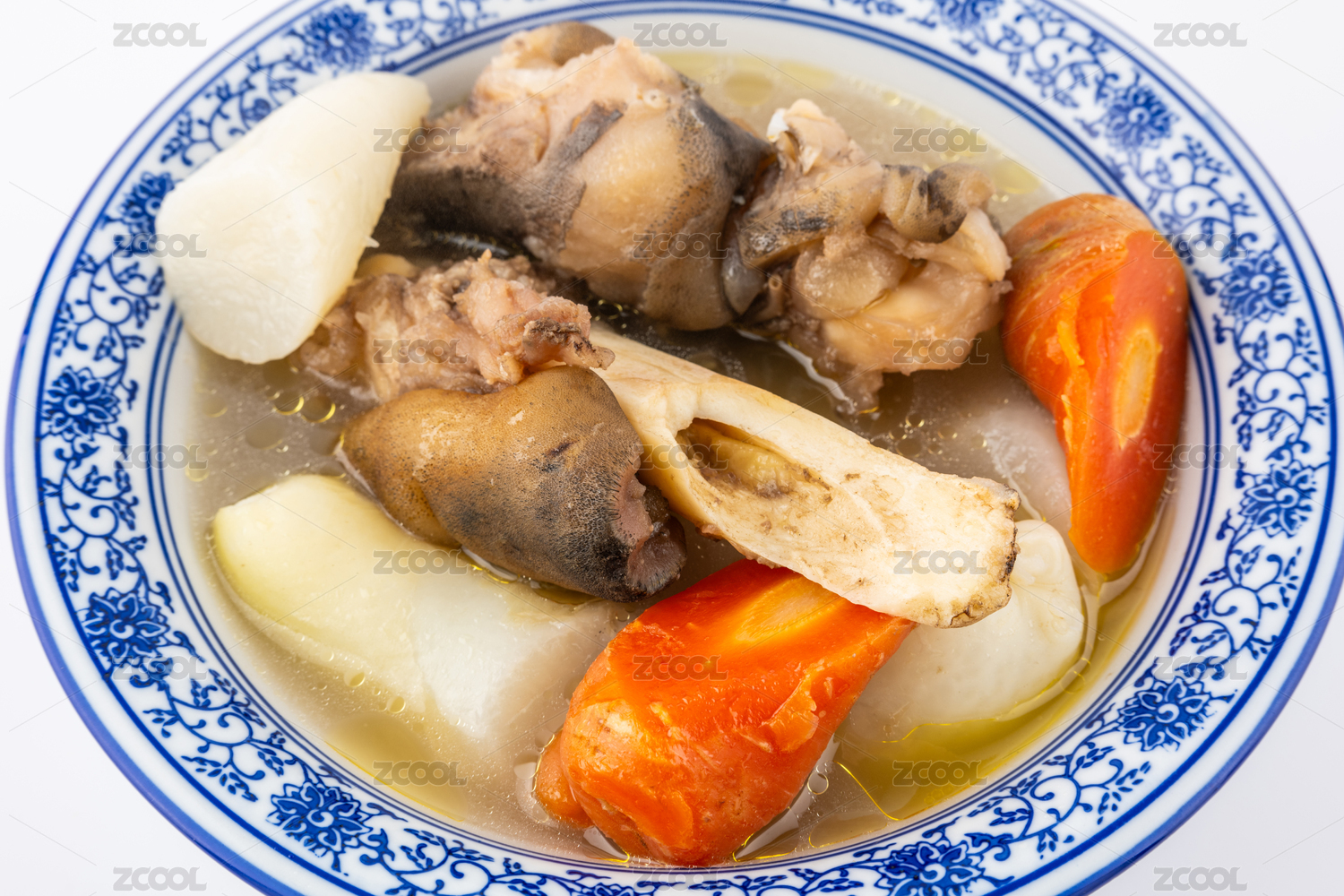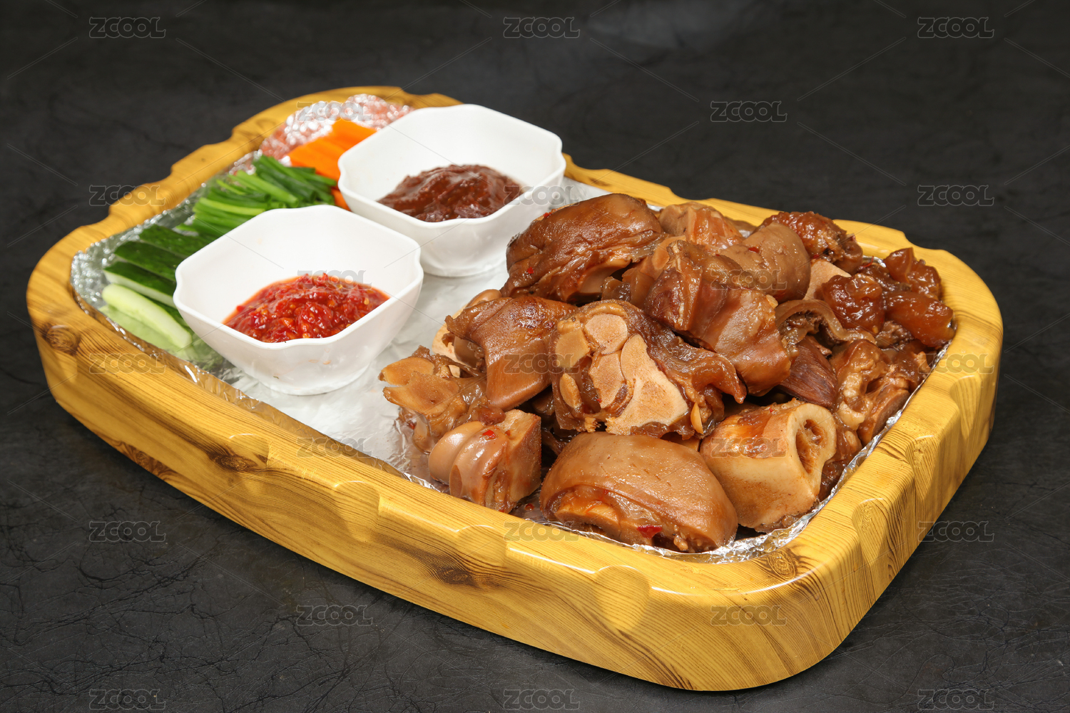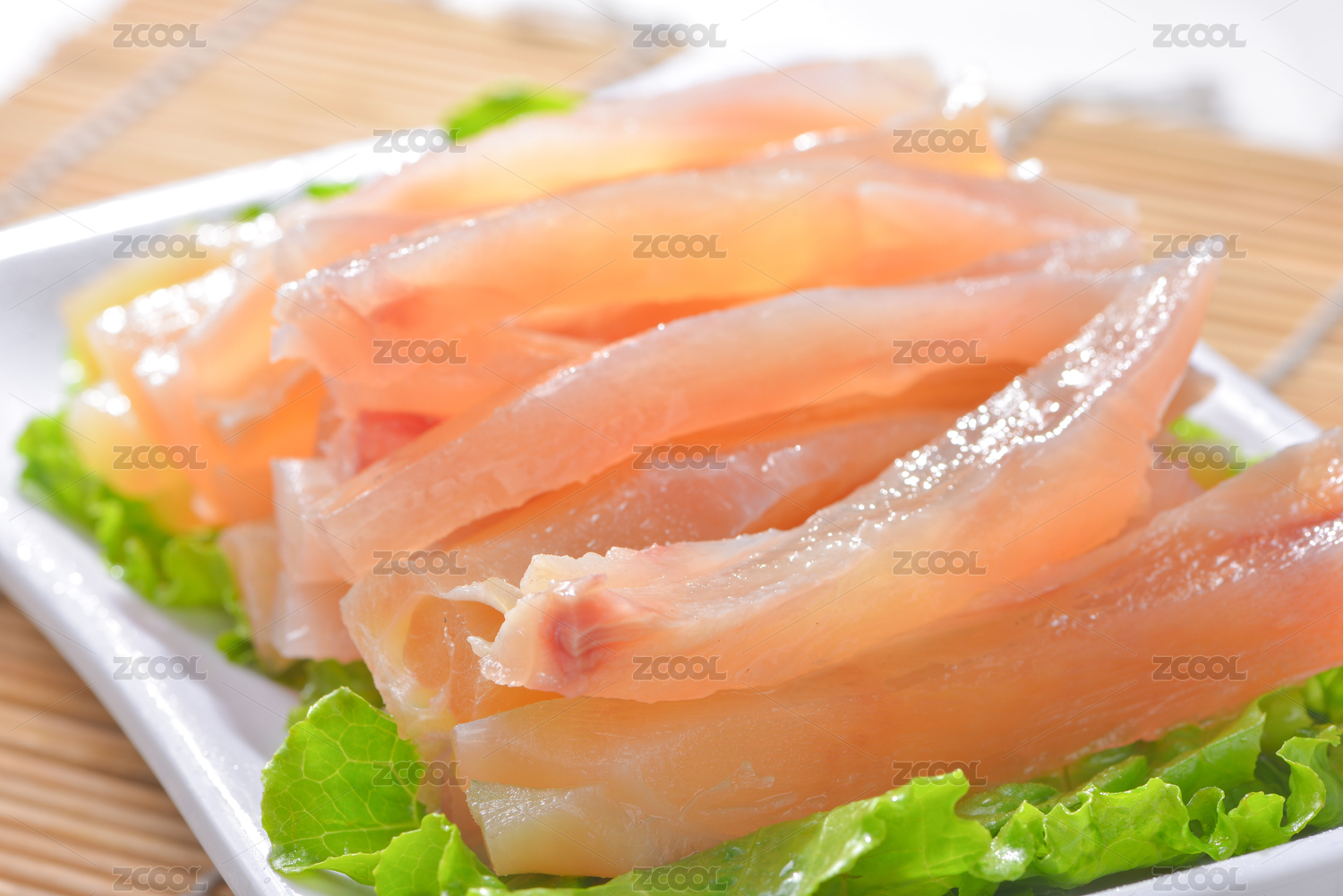 放在陶瓷盘内的冻牛肉和冻牛蹄筋