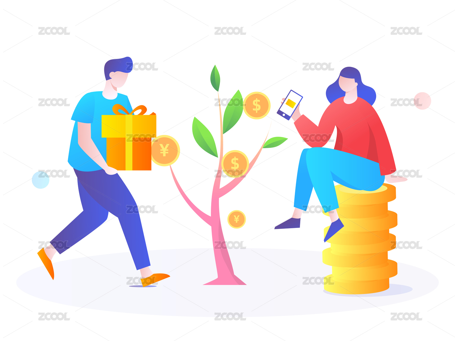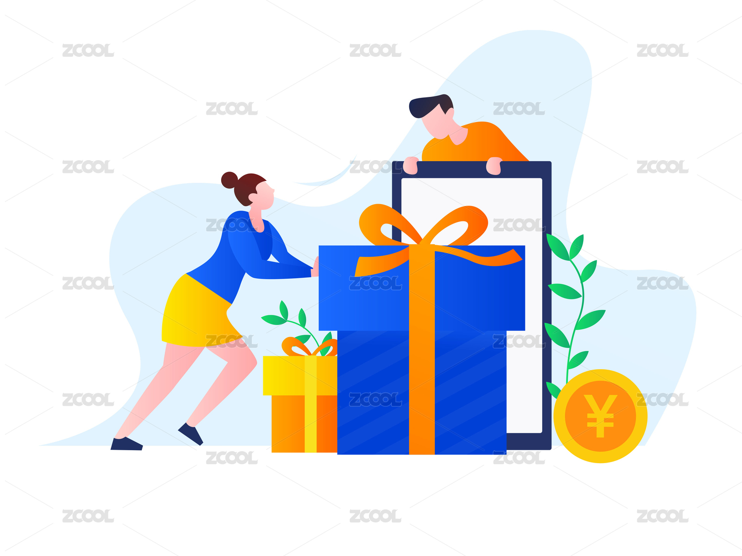 邀请好友获得礼物红包返现奖励,矢量可编辑概念人物插画