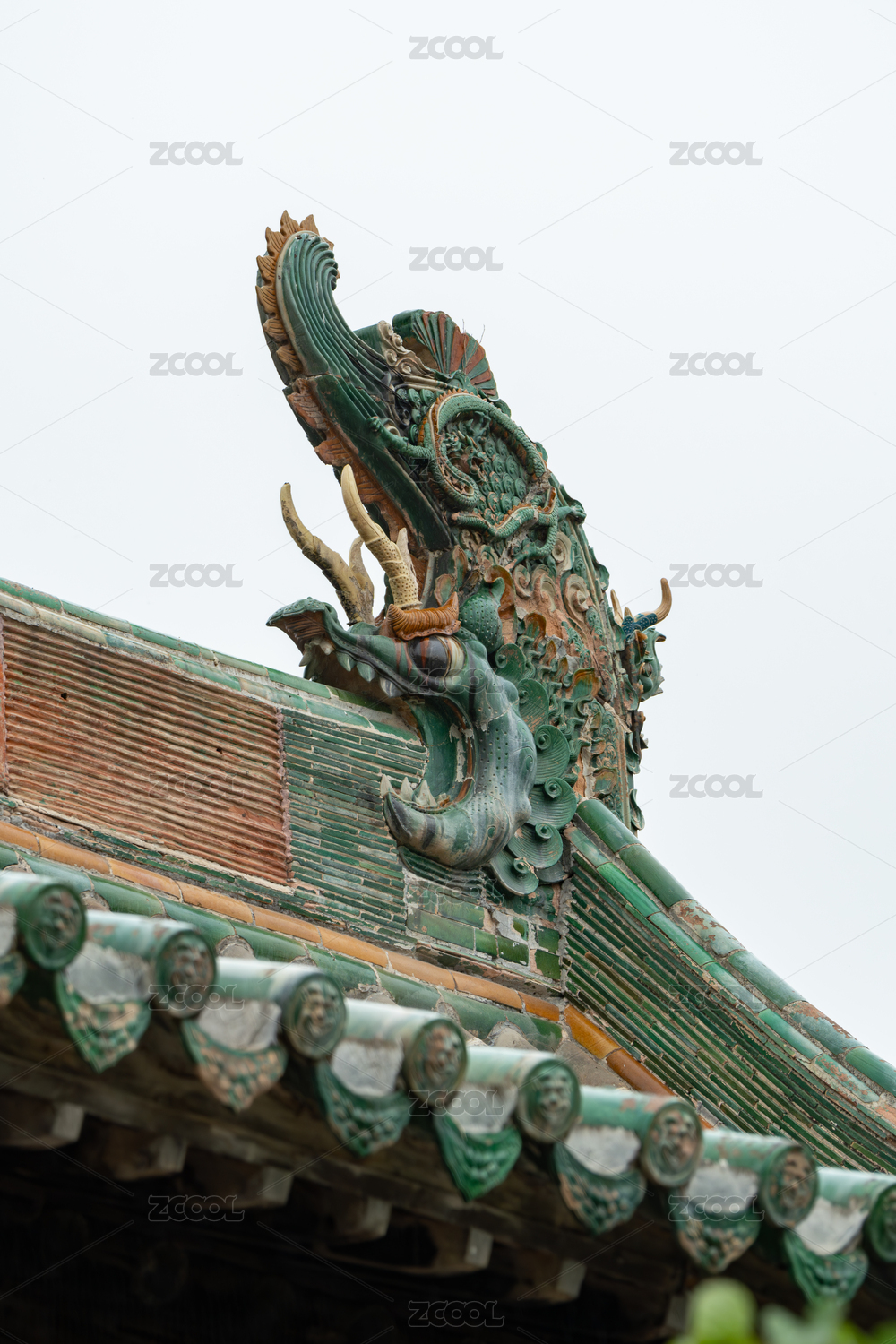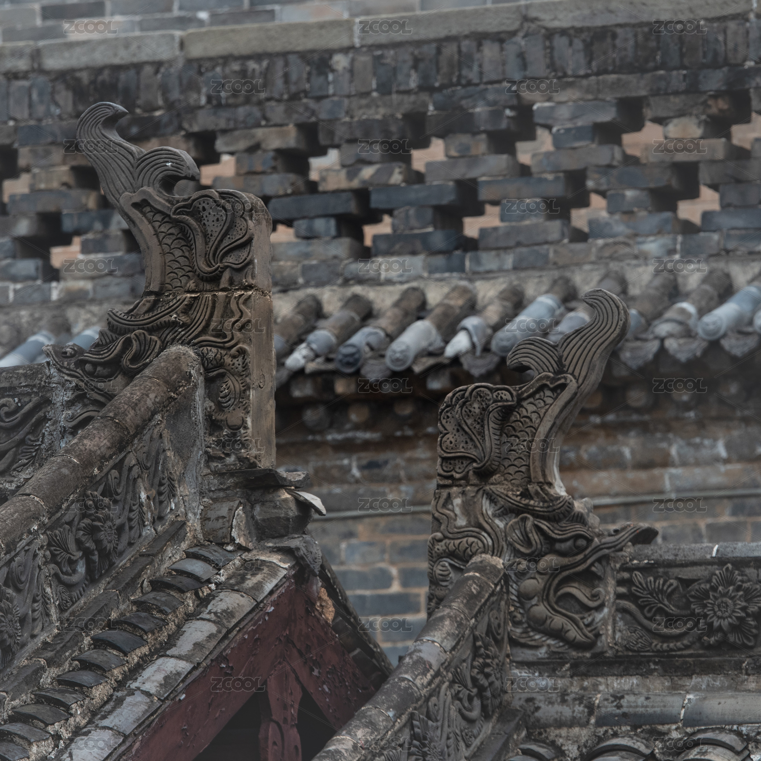 山西榆次老城城隍庙屋脊琉璃构建鸱吻