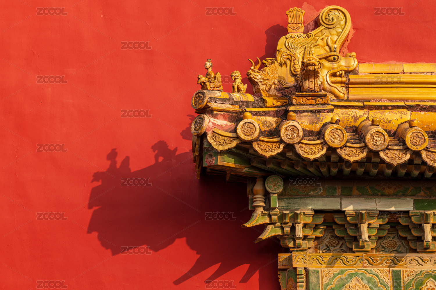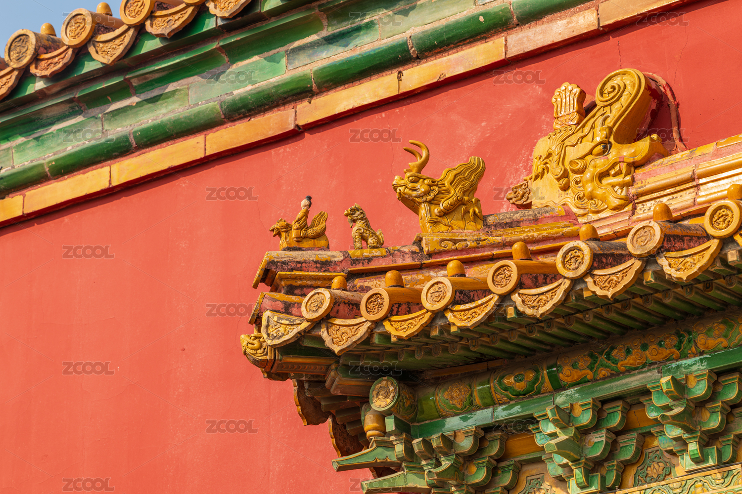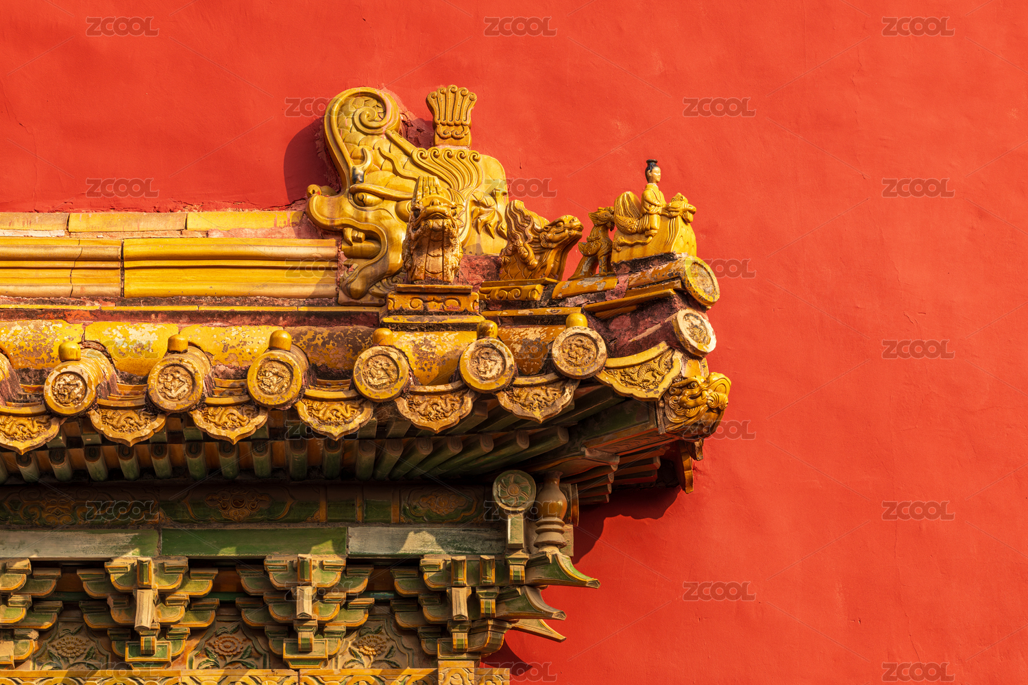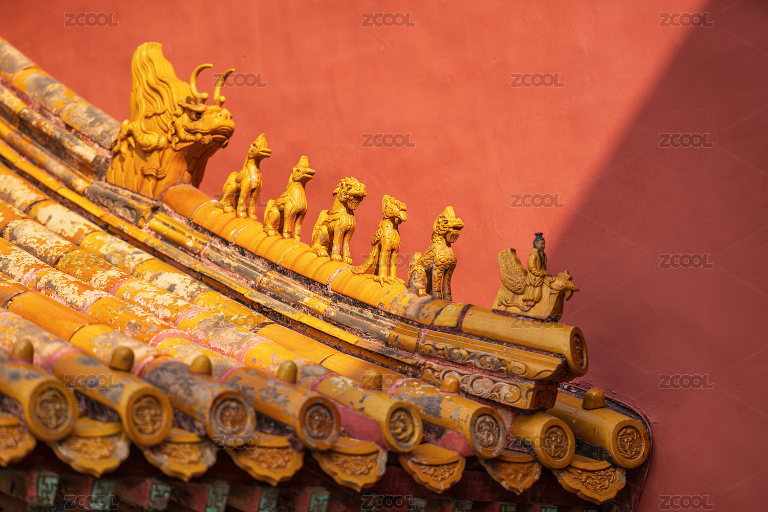 紫禁城故宫红墙黄瓦脊兽鸱吻