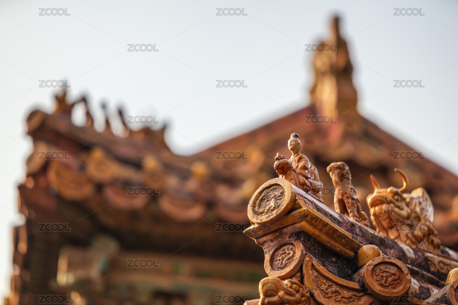 中国北京故宫宫殿屋顶上的鸱吻与垂兽
