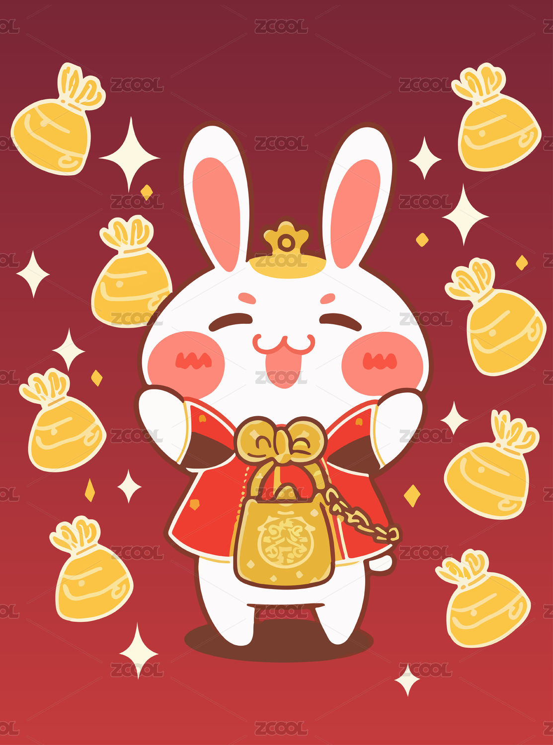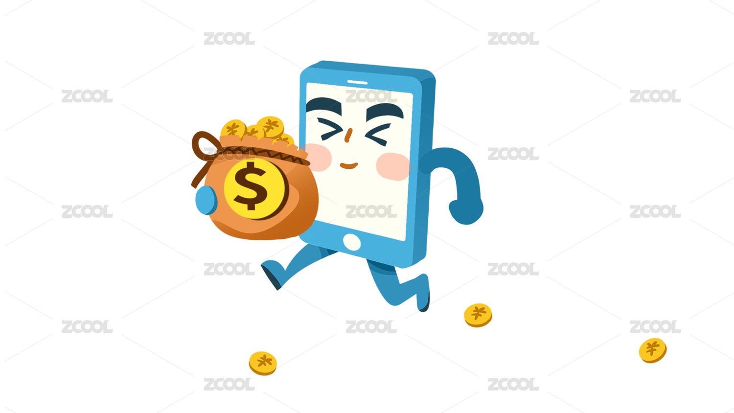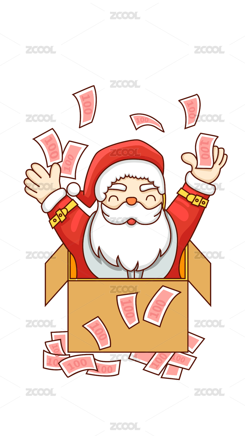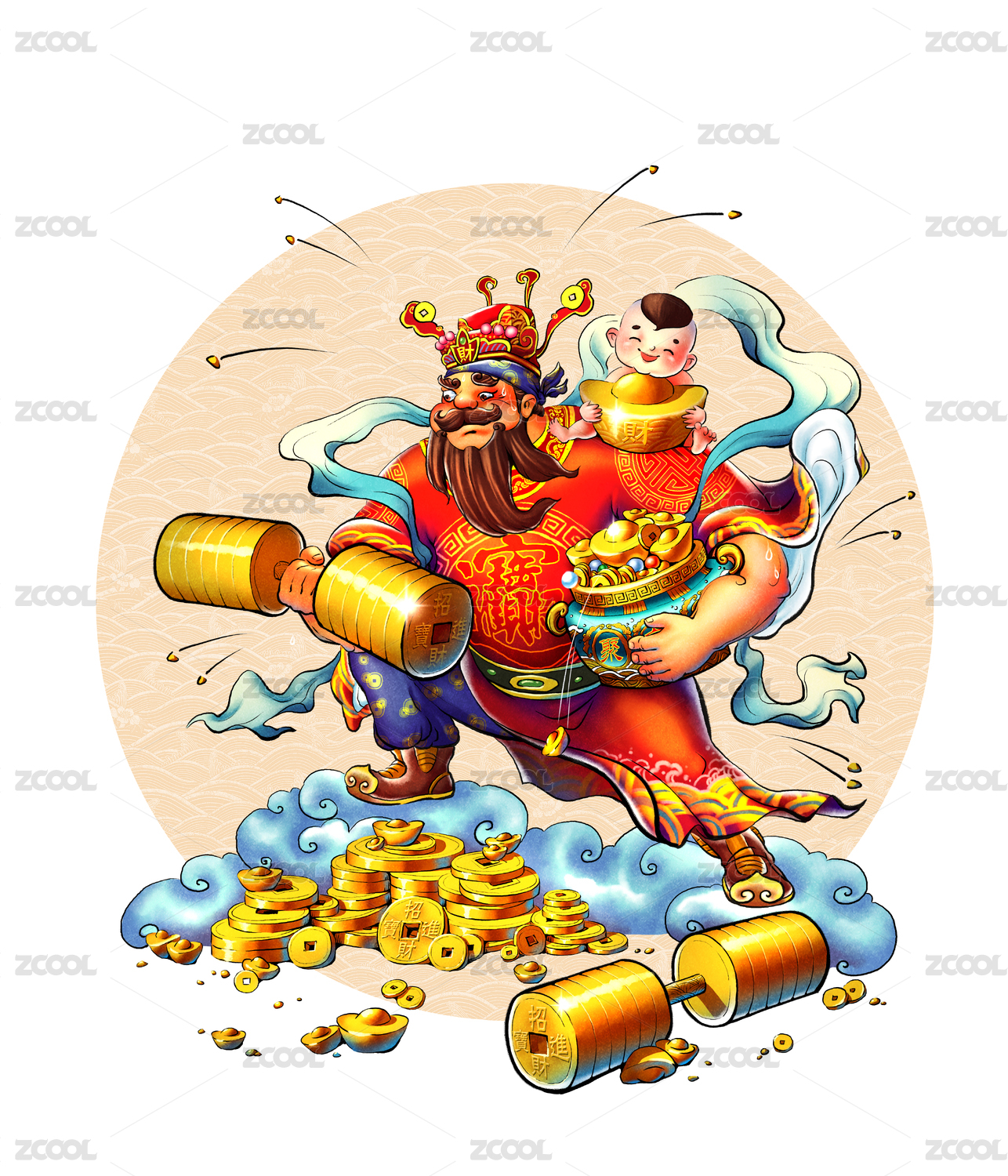 3D卡通可爱Q版财神爷驾云空中开心撒钱