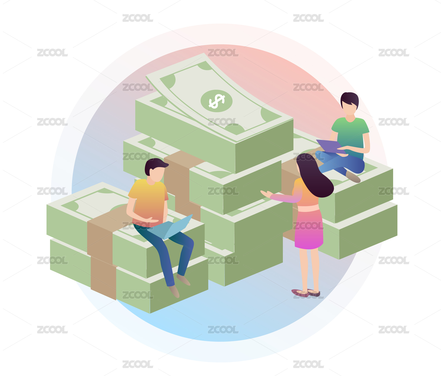 穿旗袍的女人手拿钞票撒钱卡通插画
