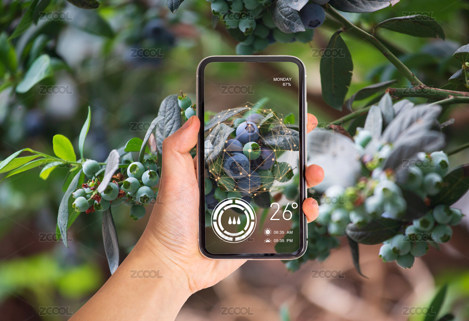 手持平板显示幼苗生长动画