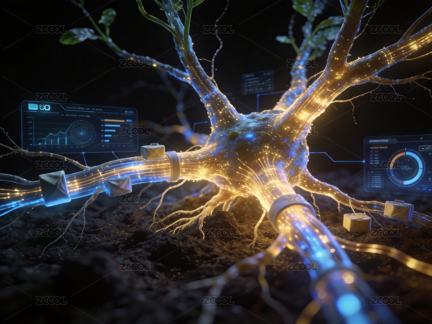 数字化根系生长的科技植物