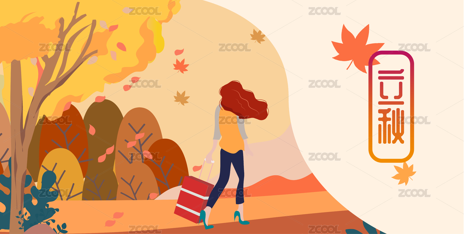 秋天女孩户外旅行矢量横版有字