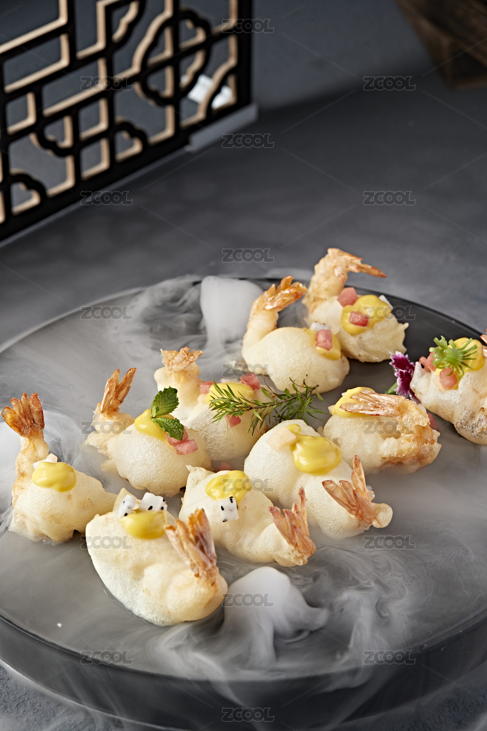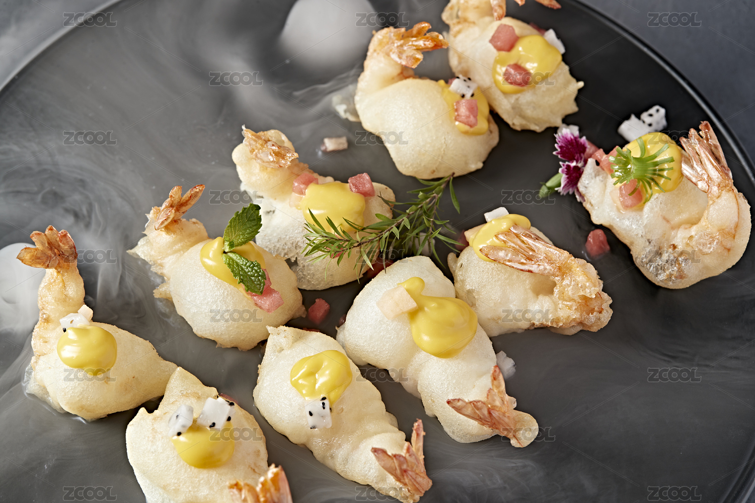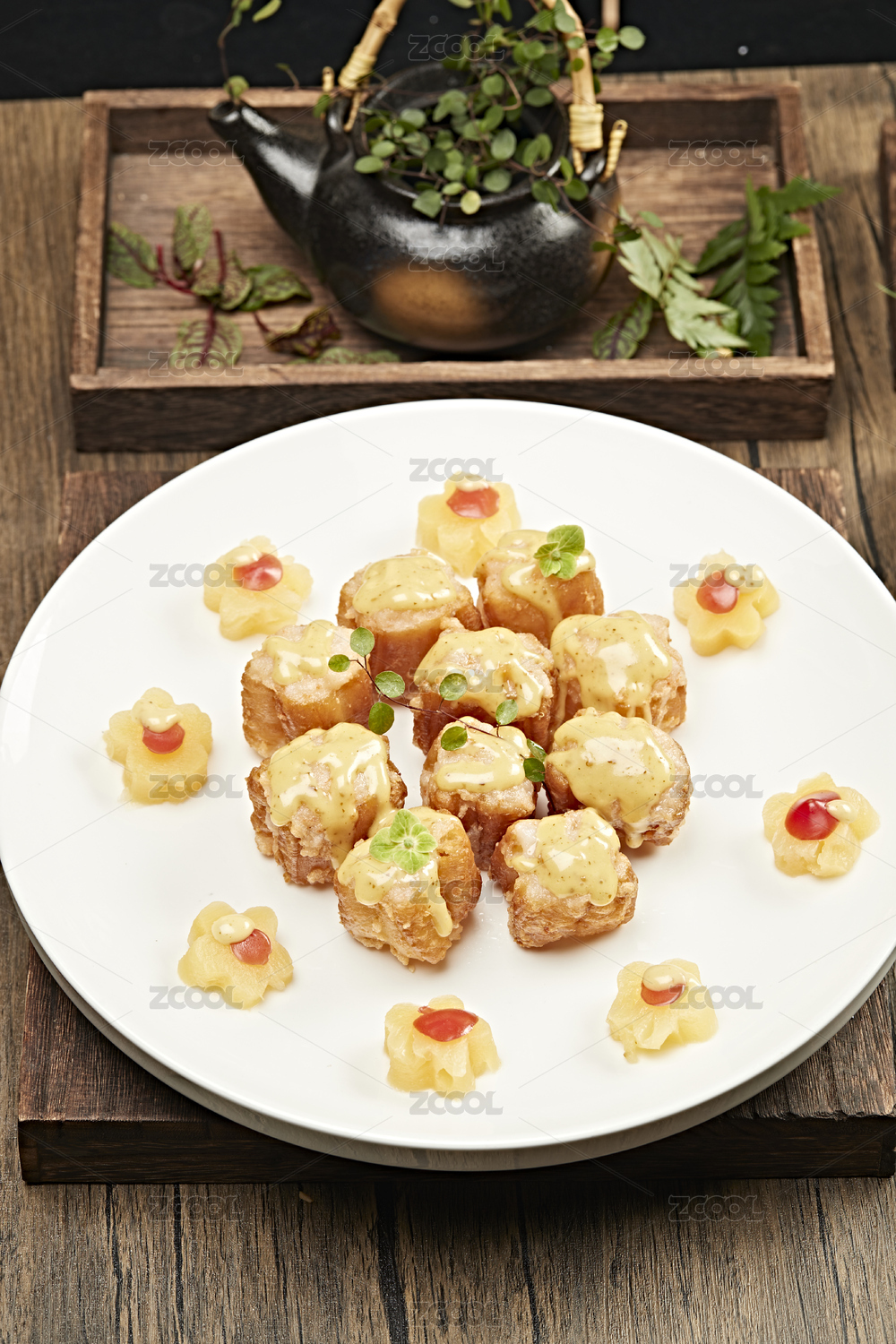 蜂蜜芥末酱果蔬粒配油炸气泡大虾仁
