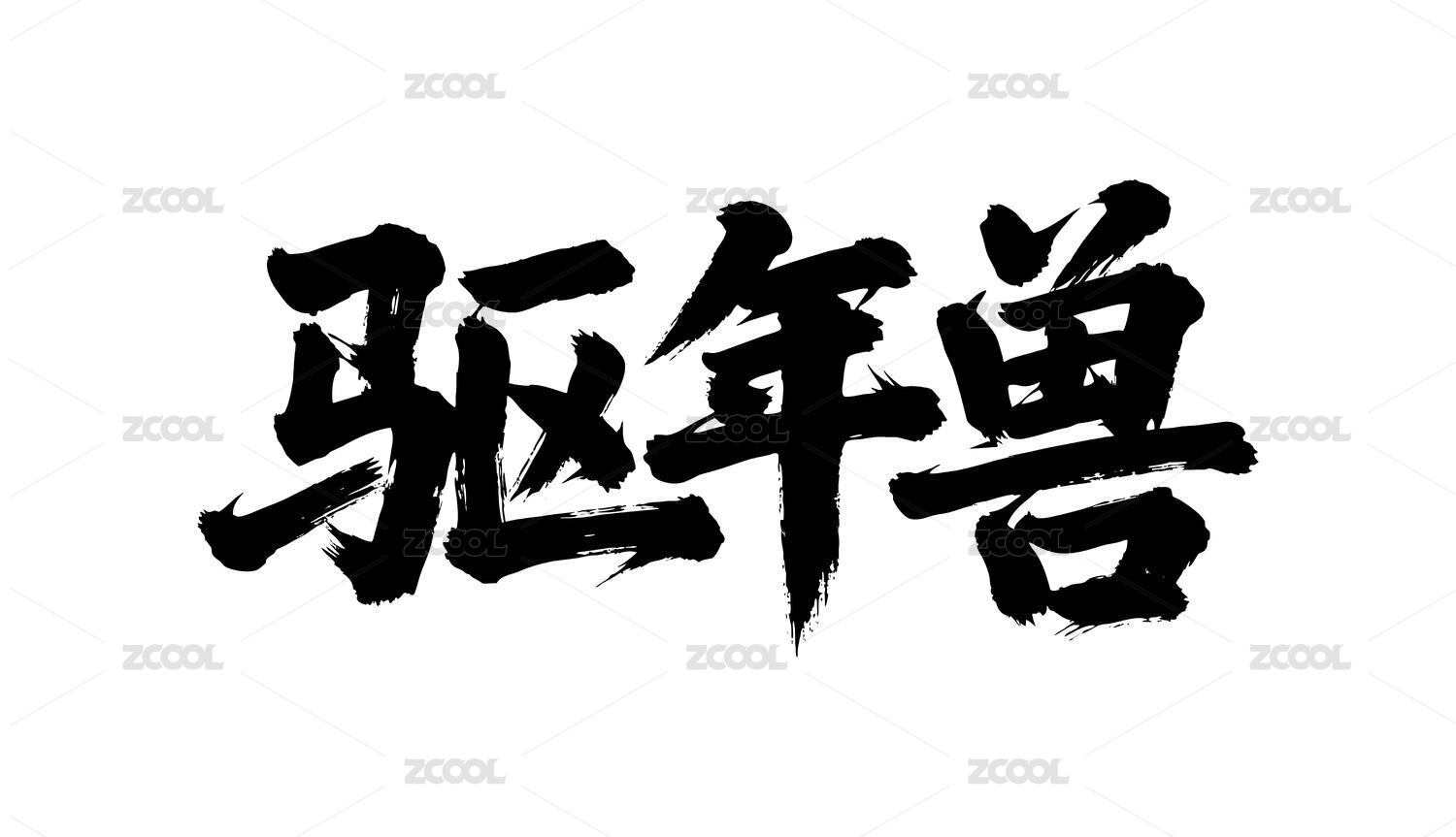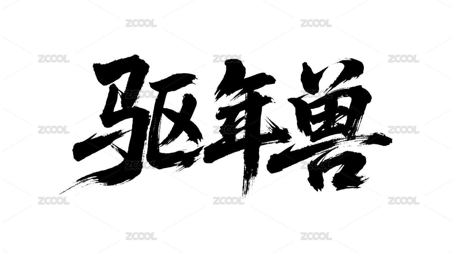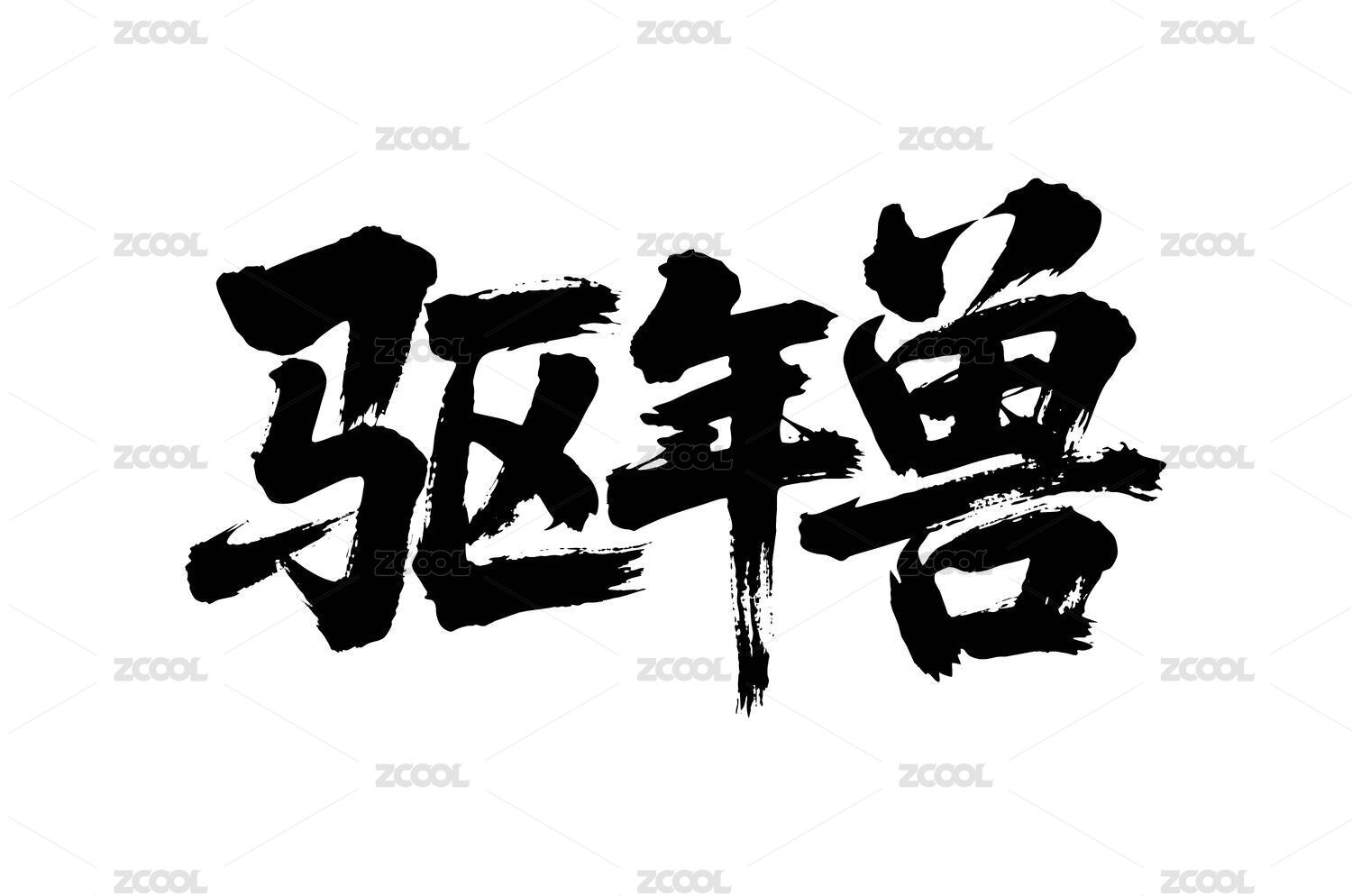 驱年兽矢量书法手写毛笔字