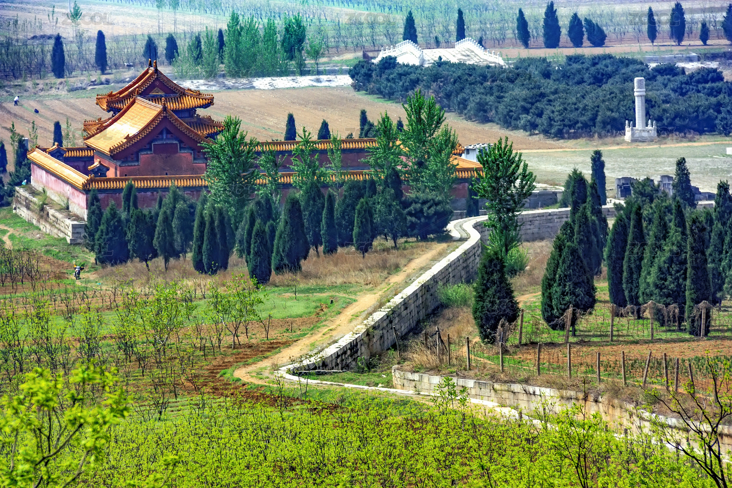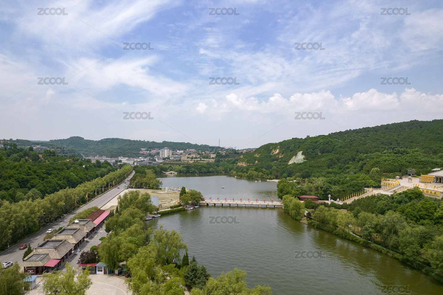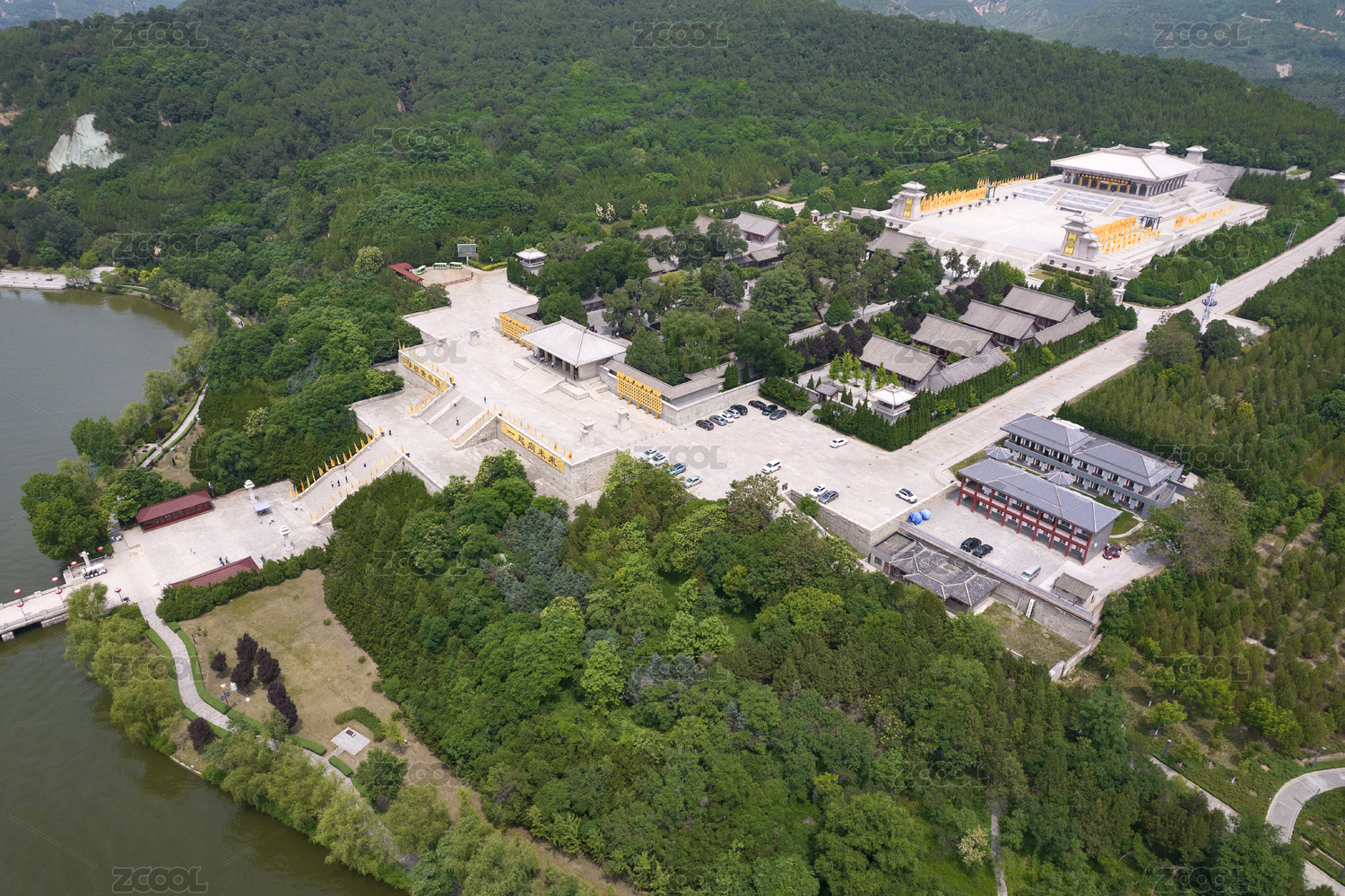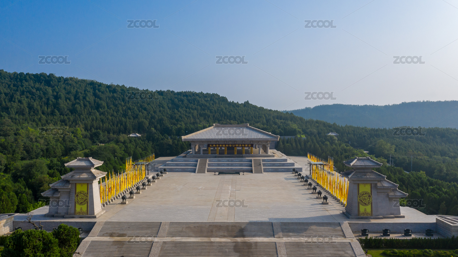 航拍中国陕西省延安市黄陵县黄帝陵景区