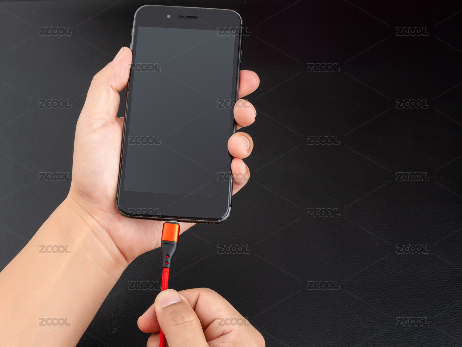 手拿充电线给手机充电