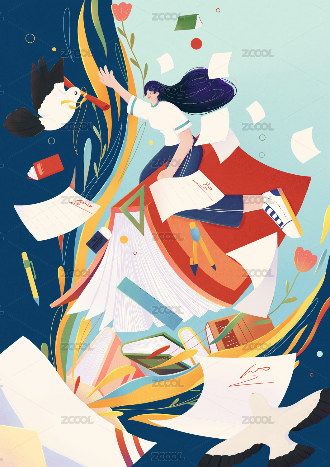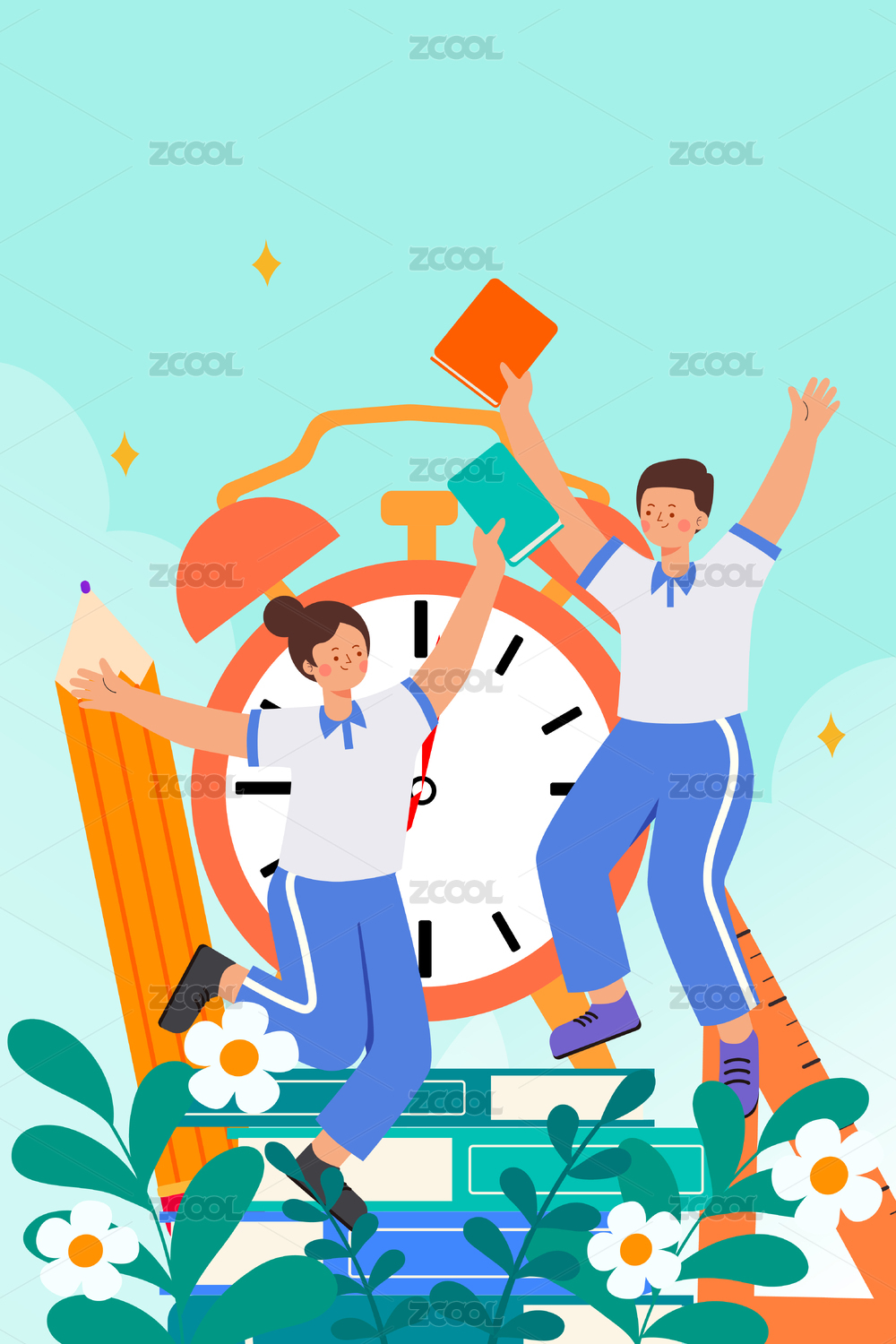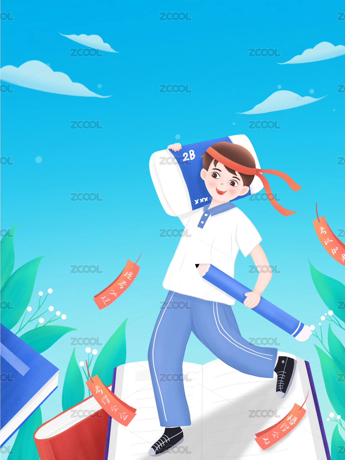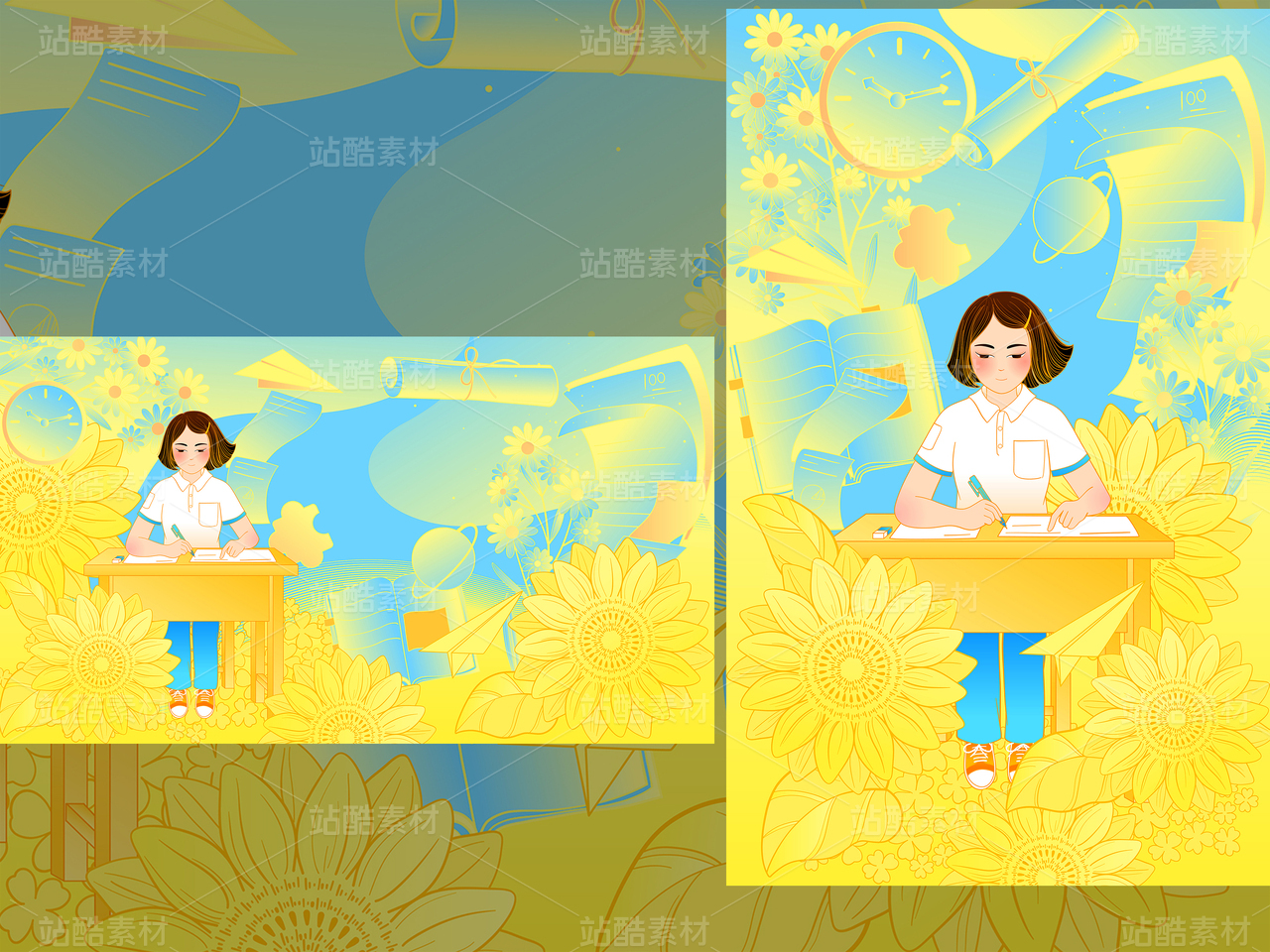 高中生初中生高考中考向日葵雏菊考试矢量插画