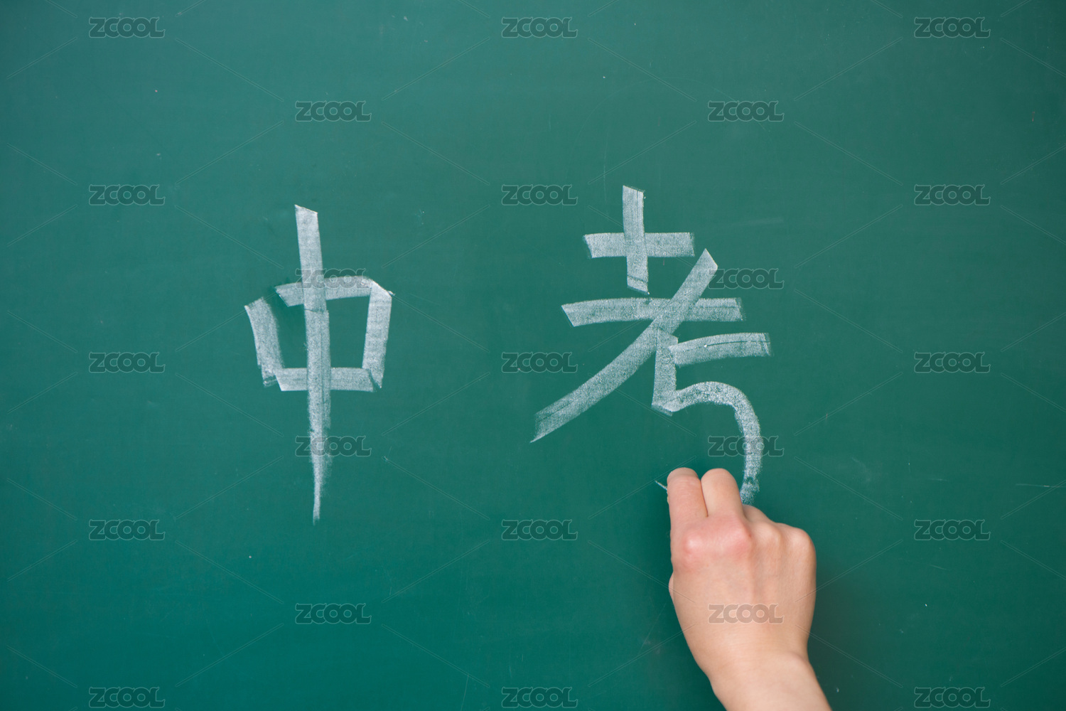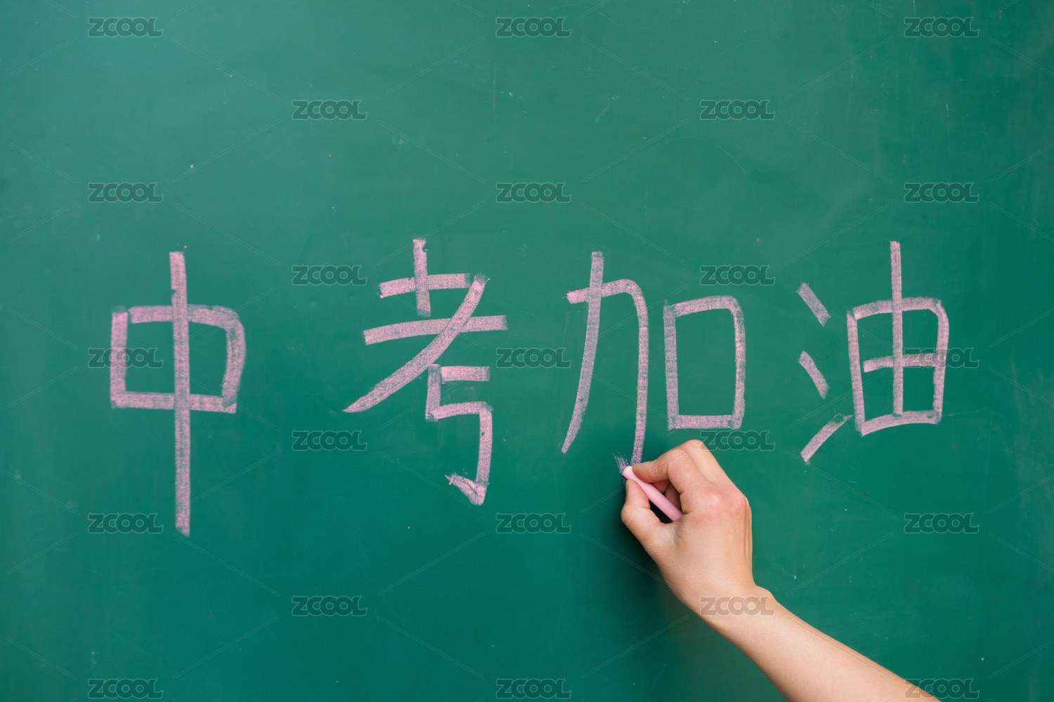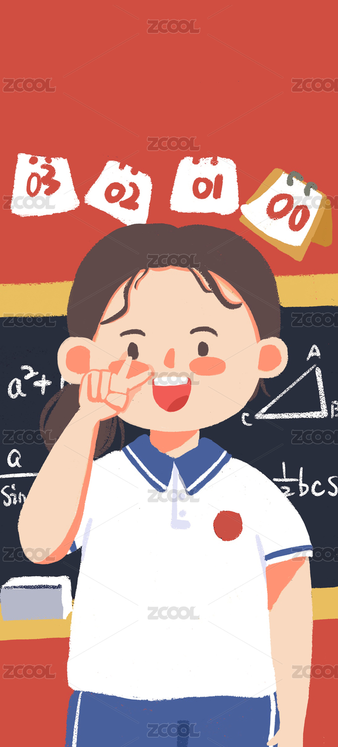 参加高考中考的女孩在倒计时黑板前微笑比耶