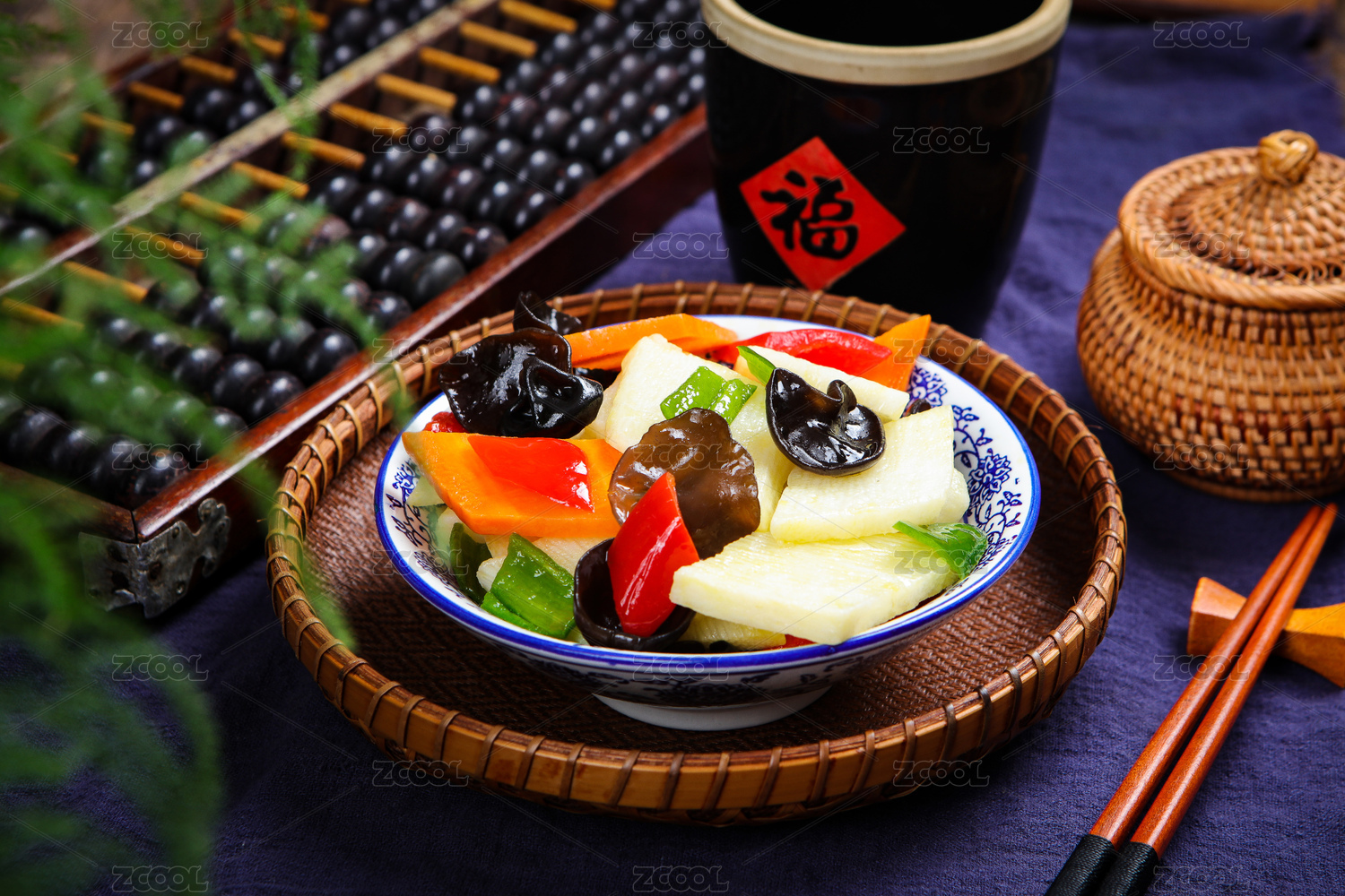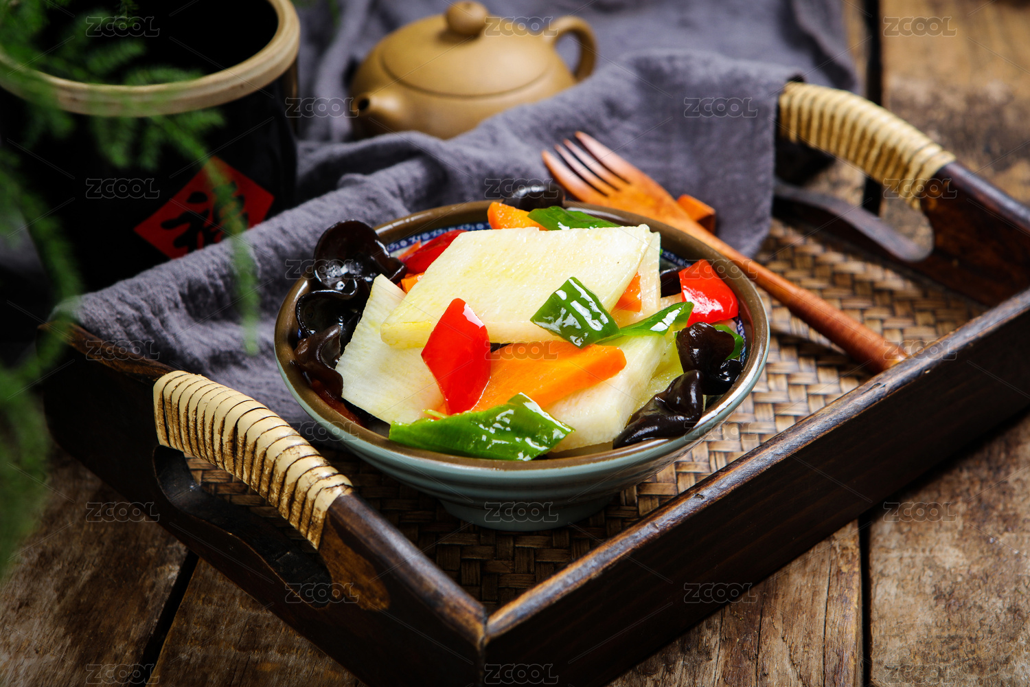 素食菜肴木耳炒山药