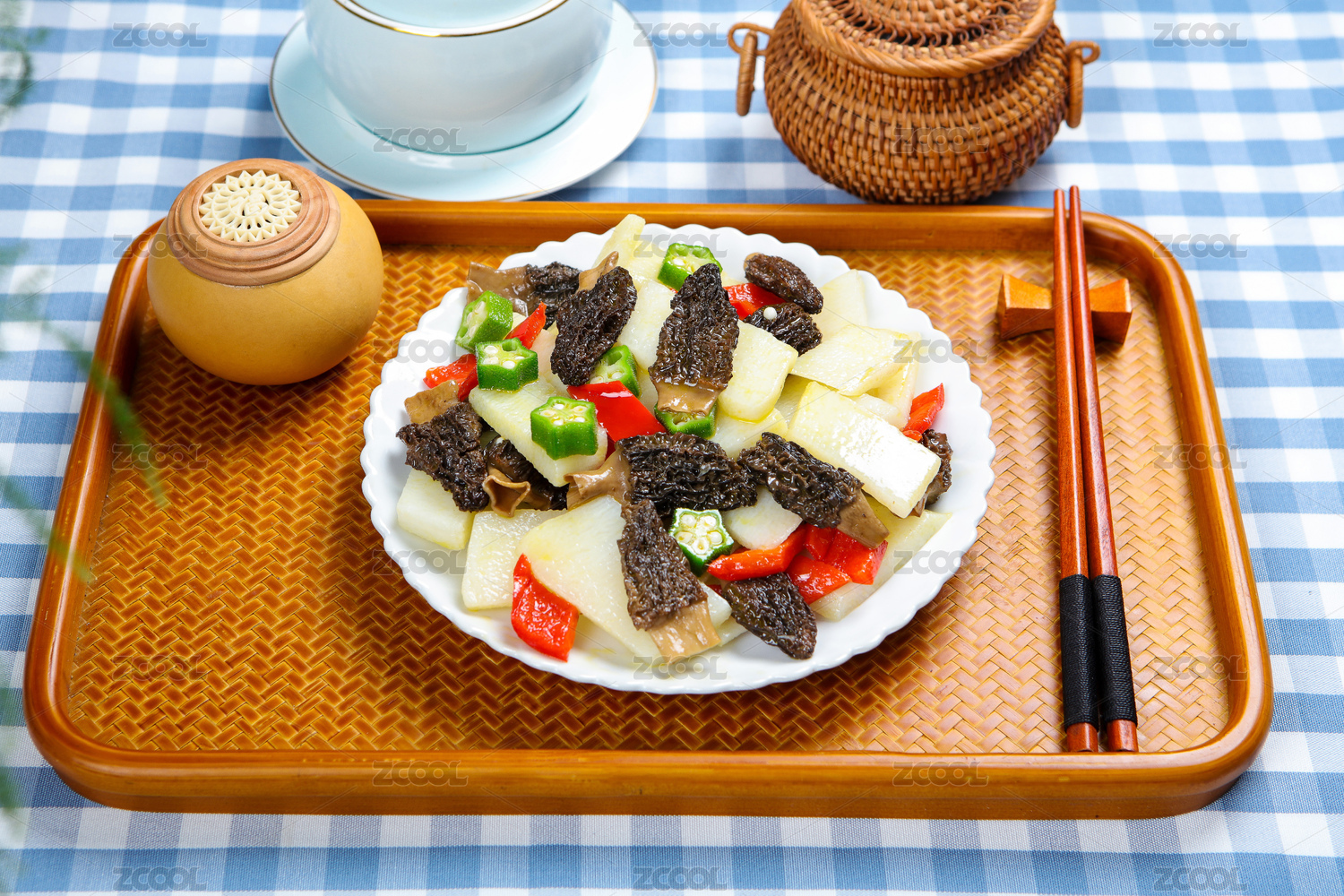 美味特色菜羊肚菌炒山药