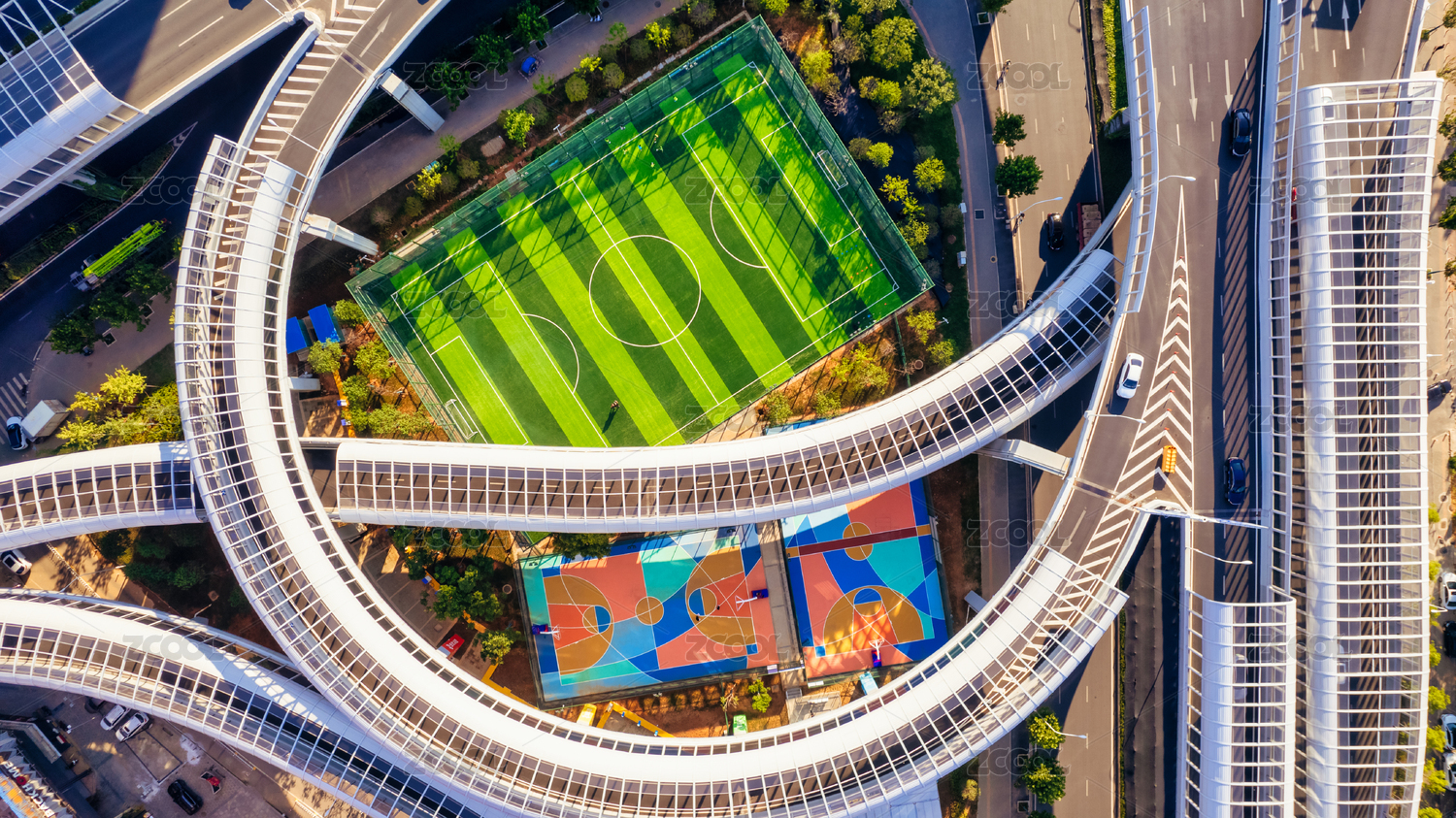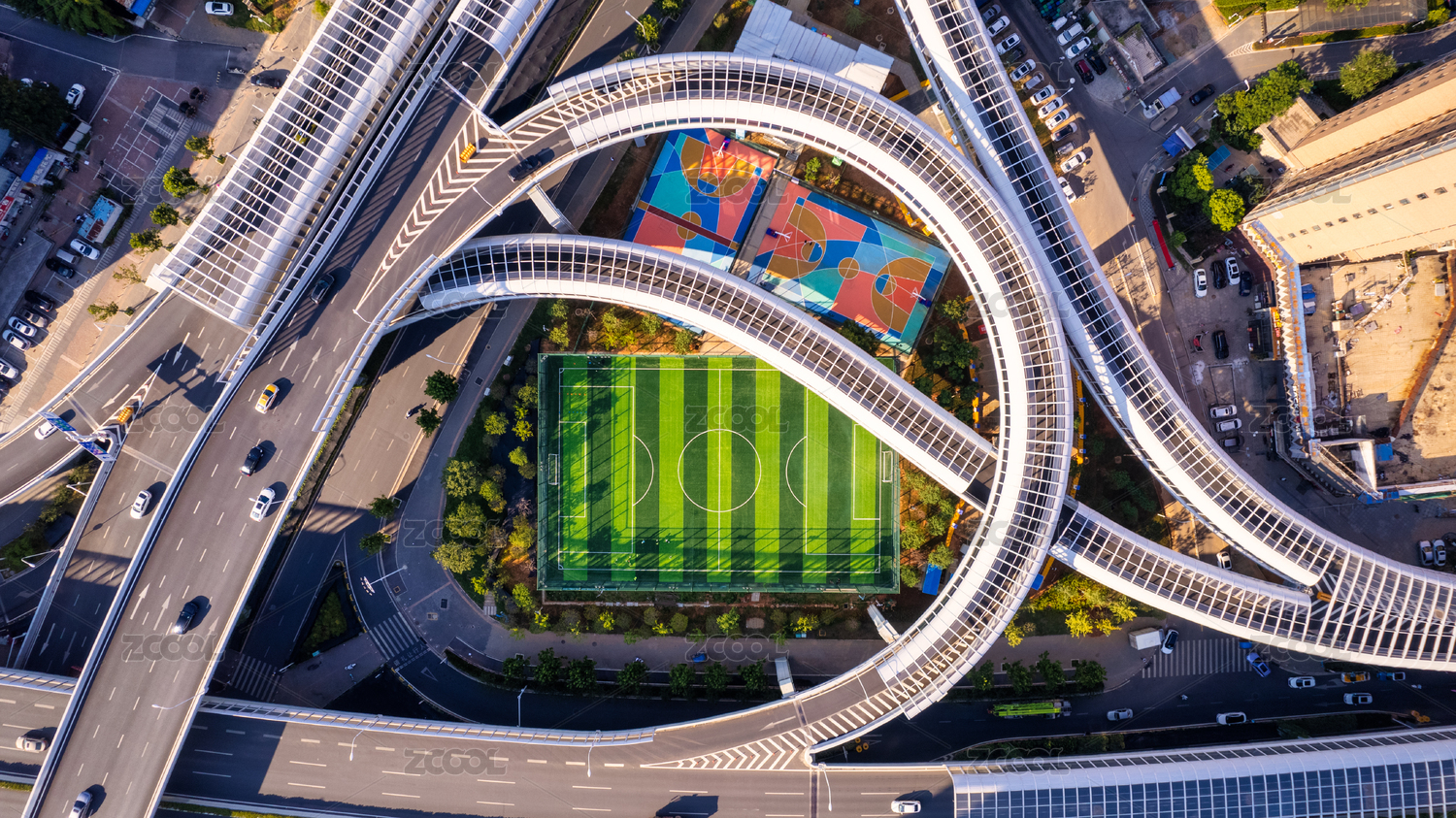 城市高架下的小型运动场