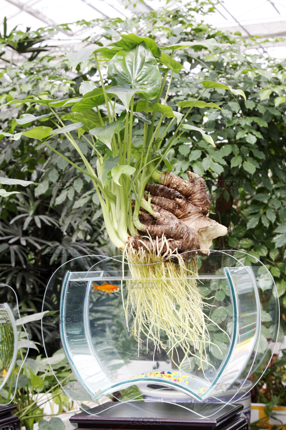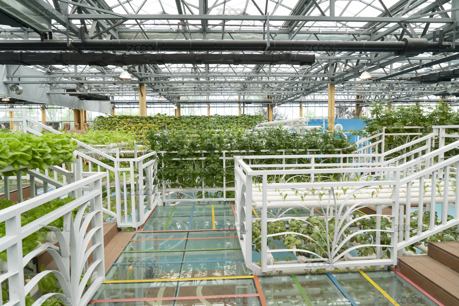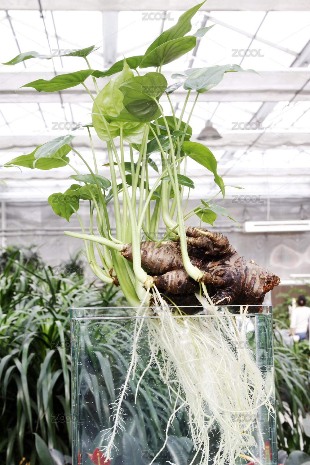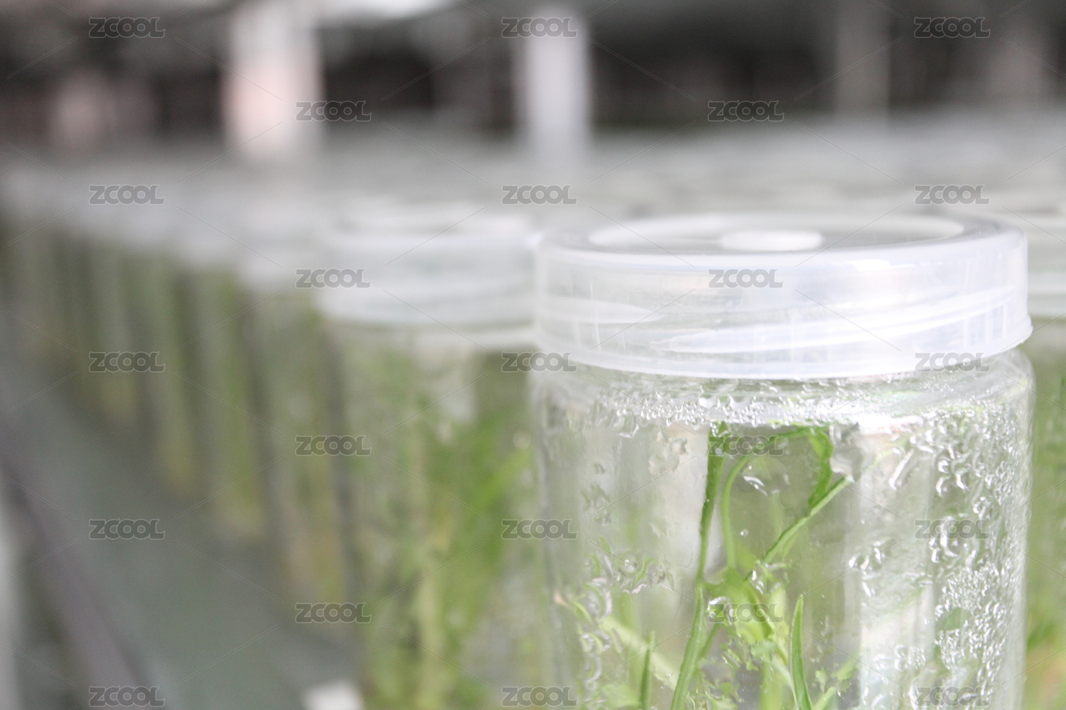 农业实验室里科学人员手拿放大镜在观察水培植物