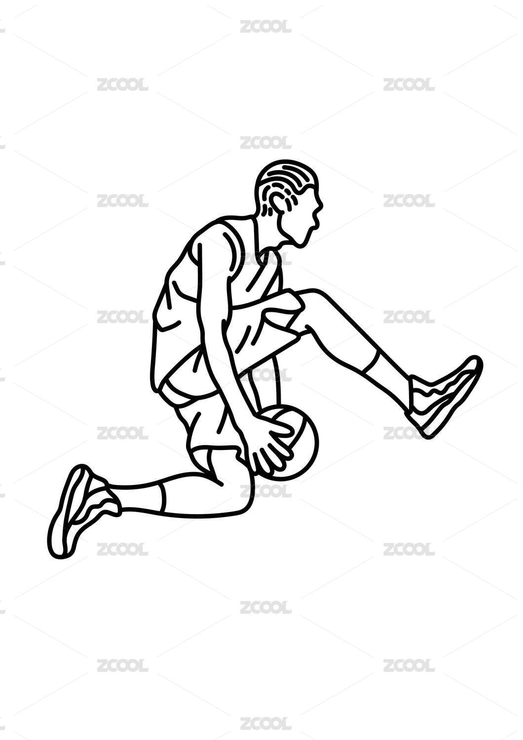 抽象创意线条篮球运动员人物动作