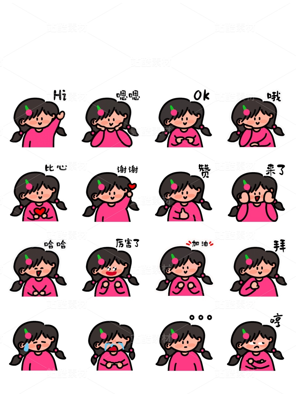卡通人物表情包套图可爱女孩形象贴纸1:日常篇